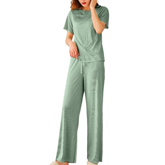 Женская одежда для дома, модный эластичный пояс, быстросохнущая женская одежда для дома, однотонный тонкий топ, брюки, одежда для сна, комплект одежды для сна