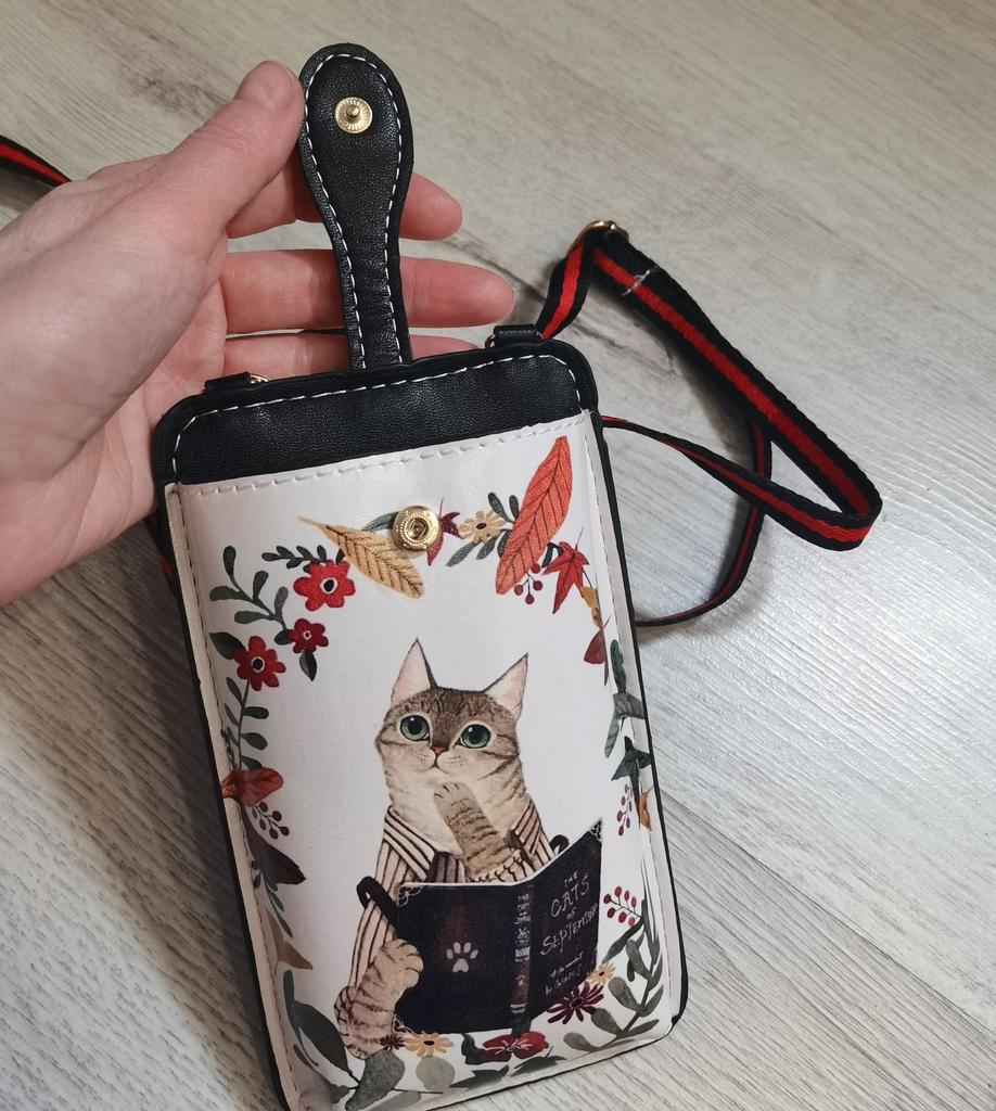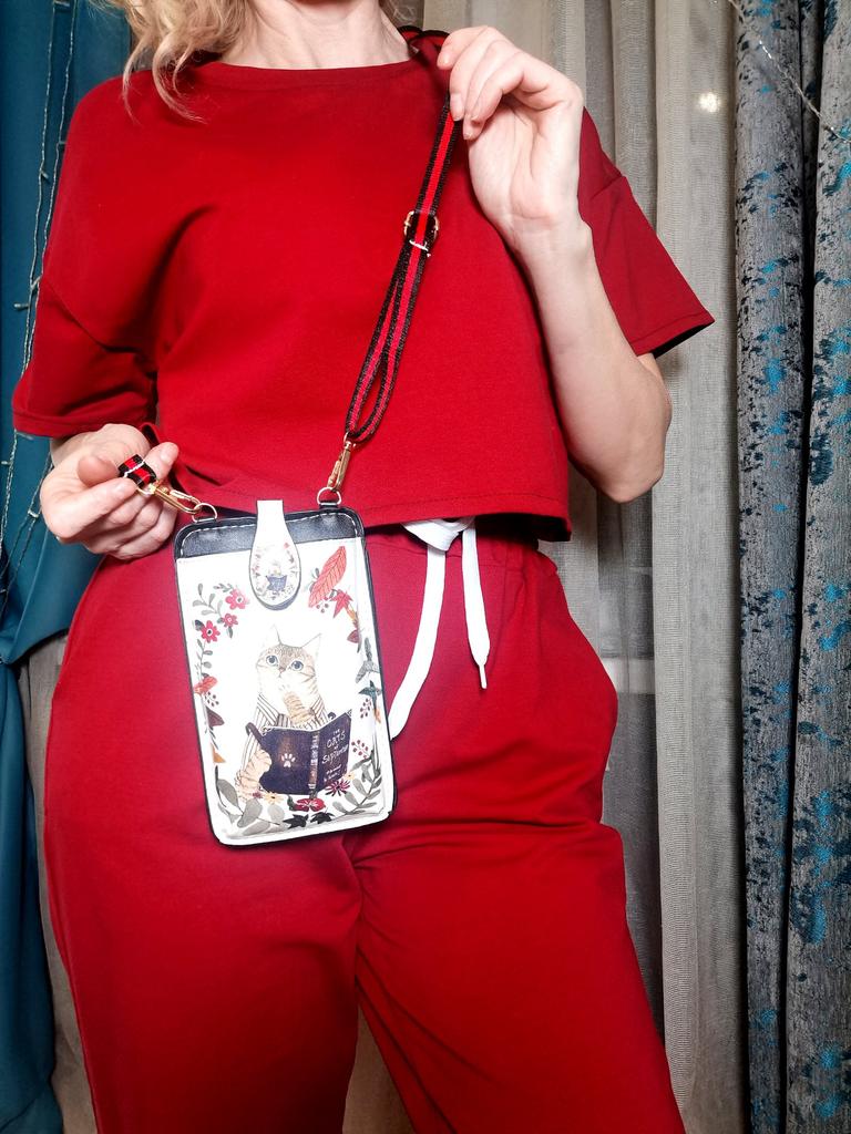 Интересная сумочка для телефона, с кармашком для карт, пропуска, билетов, проездного или тонкого блокнотика с ручкой и т.п., на обратной стороне сумочки. Ремешок регулируется- можно укороченным повесить на шею, как фотоаппарат у туриста, а можно удлинить и носить через плечо. Рекомендую товар!♥️👍