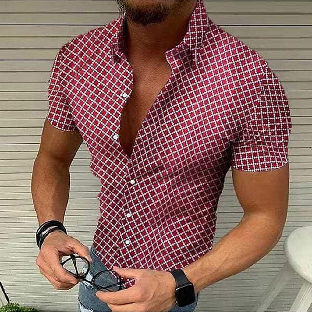 Новая летняя мужская облегающая рубашка с принтом, большая модная повседневная мужская рубашка с коротким рукавом