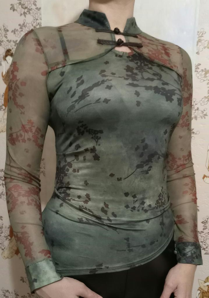 От блузки просто в восторге, думала не подойдет, но ткань немного тянется и она подошла. Прозрачные только рукава и ключицы. Прошита хорошо, пуговки на манжетах и шее держатся хорошо