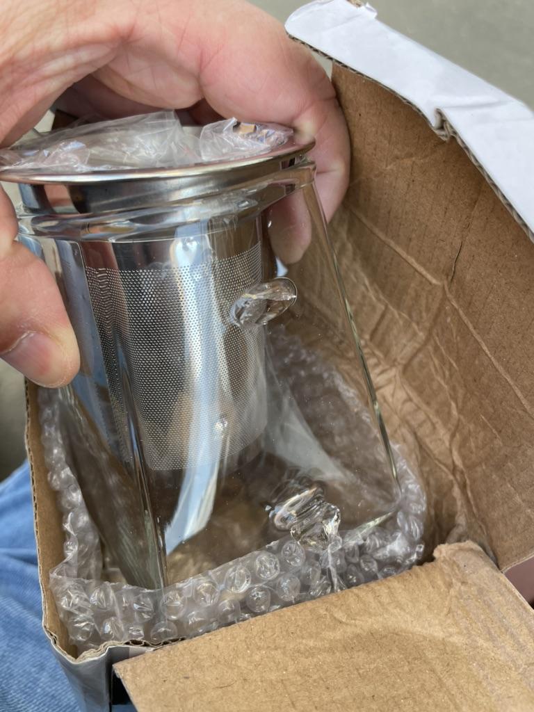 Пришло все целое но коробка мятая шло долго из за закрытых границ. Чайник супер ,необычная интересная форма.