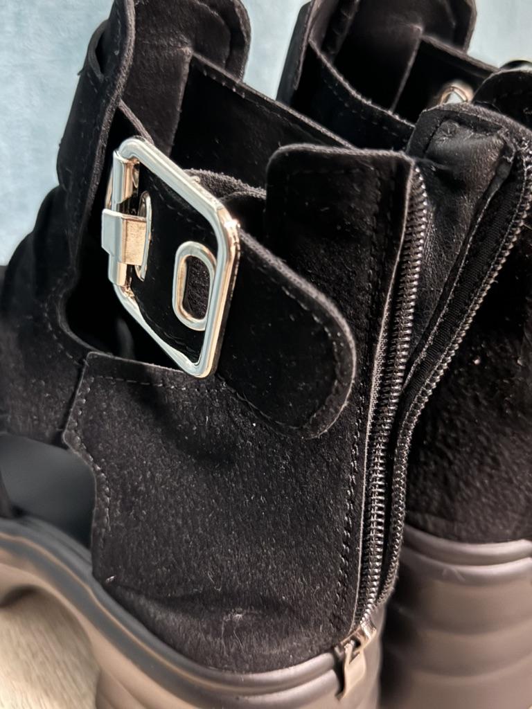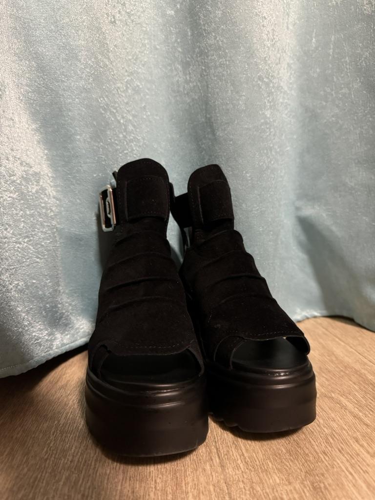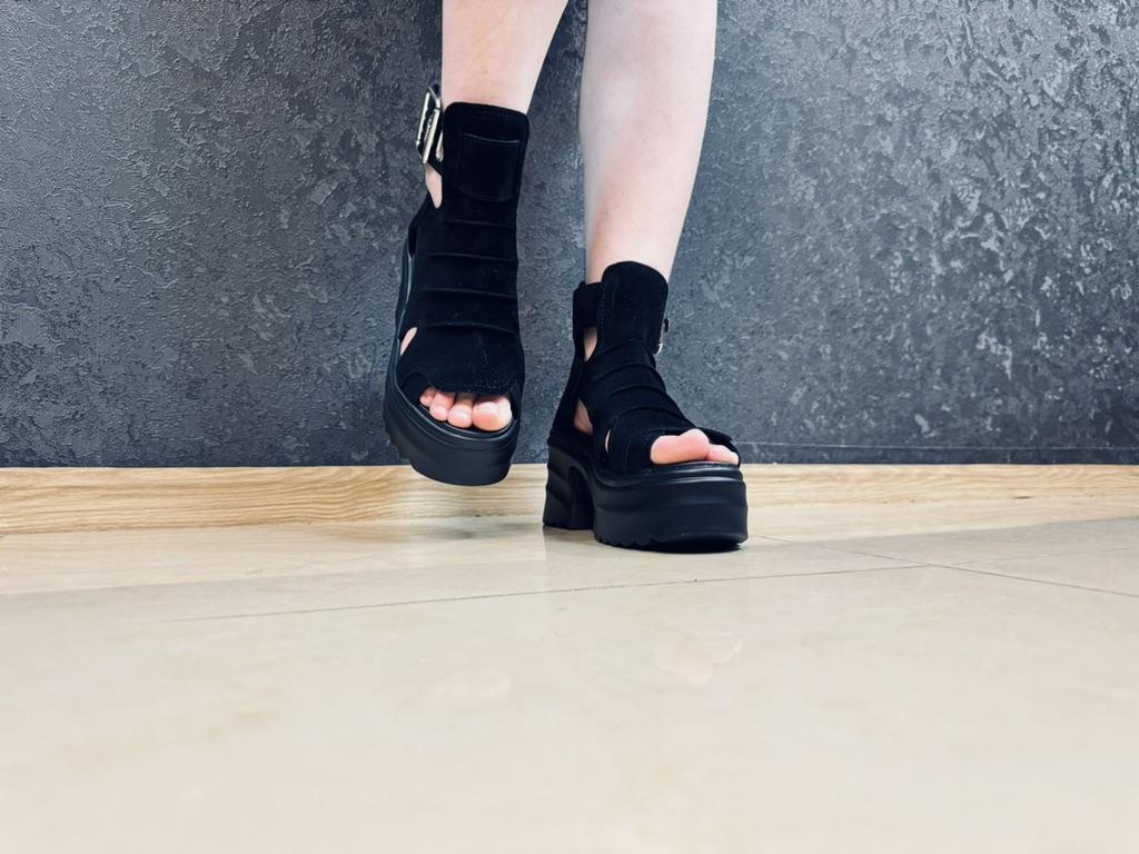 Очень крутые босоножки ✨ Они немного грубоватые внешне, но зато могут вписаться и к обычному образу, и более рокерскому/готическому. На мою ногу 23,5 подошли идеально! - Они очень легкие! Учитывая их объёмы я думала, что они будут потяжелее. Скорее всего, подошва сделана из очень легкого ТПУ; - Верх сделан под замшу, хорошо сохраняет первоначальную форму; - Застежка - замок, очень удобно быстренько влезть и застегнуть; - Ходить в них комфортно, но на длинные дистанции по жаре может быть тяжеловато. Нога потеет немного в закрытой обуви и из-за этого кожу натирает; - Тест-драйв пробежкой был устроен просто потому что я опаздывала, но в целом они его прошли. Один раз у меня только нога подвернулась, так что тут конечно аккуратнее надо быть :) В целом, очень понравились. Выглядят клево, легкие, но при том объёмные. Прямо с кайфом)