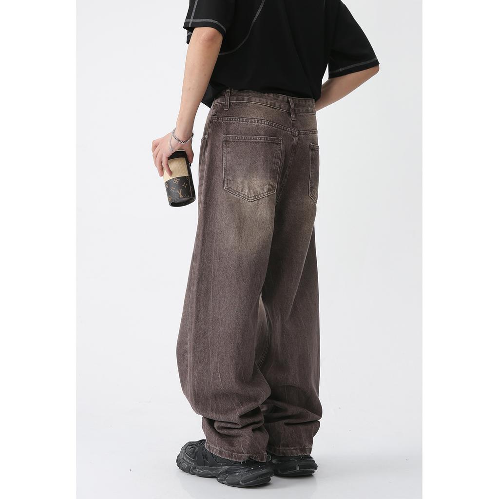Мужские весенние новые повседневные джинсовые брюки, винтажные прямые джинсы с коричневым галстуком в цветочном стиле