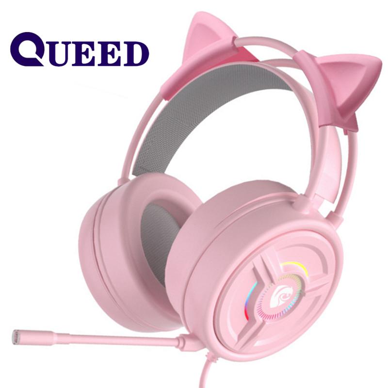 Новая версия Cat проводной игровой гарнитуры для ноутбука для киберспорта The Pink Crystal Header с пшеницей