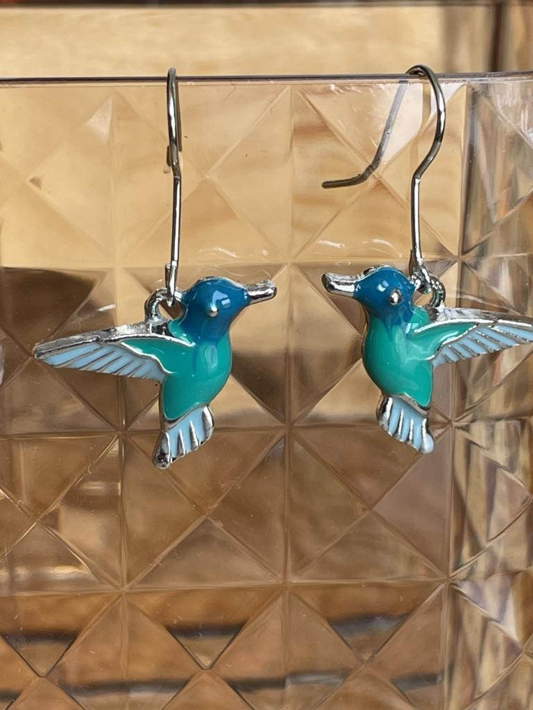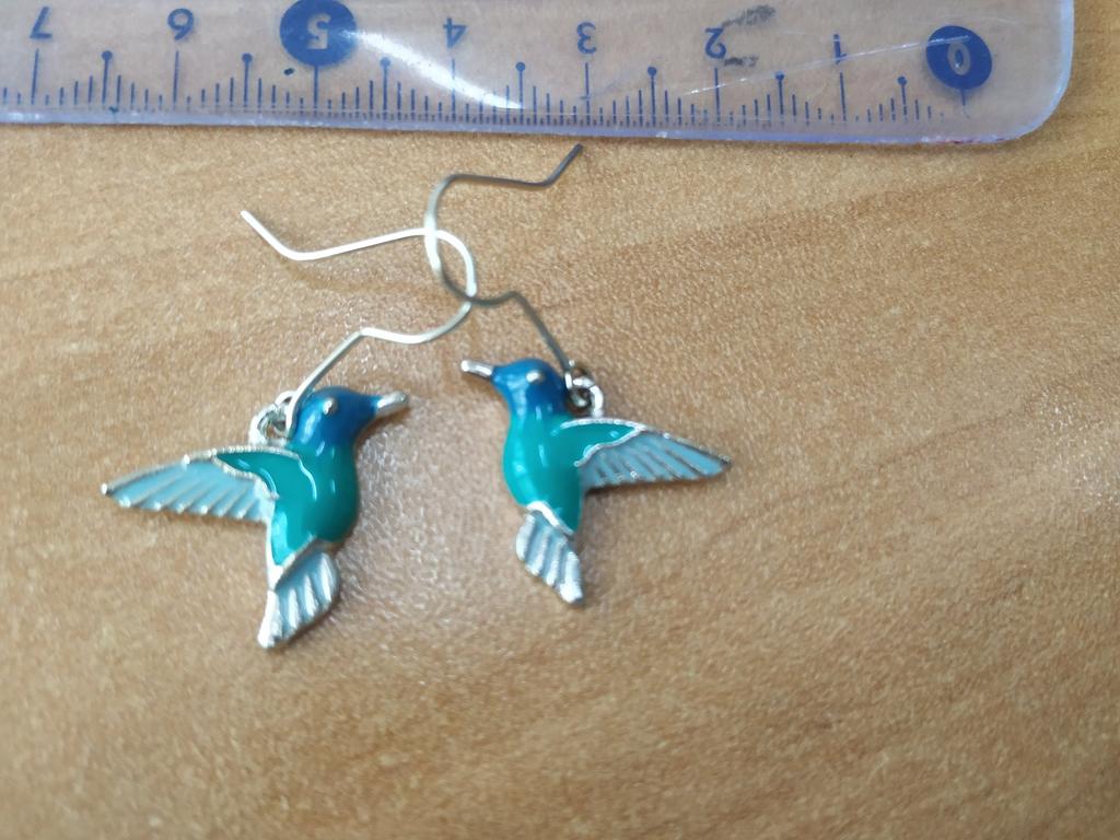 Выиграла за 0,1$. Миленькие. Подвески симметричные, смотрят птички в разные стороны. Эмаль аккуратная. Идеально подходит по цвету к цепочке с подвеской с такой же колибри, только покрупнее. Спасибо!
