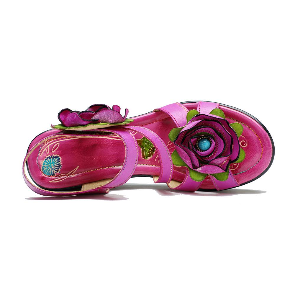 Johnature Винтажные удобные летние босоножки на танкетке с цветочным принтом, женская обувь ручной работы из натуральной кожи в этническом стиле