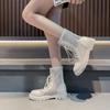 Летние ботинки на шнуровке в сетку, дышащие женские ботинки с высоким каблуком, красные полые ботинки, студенческие сапоги в сетку