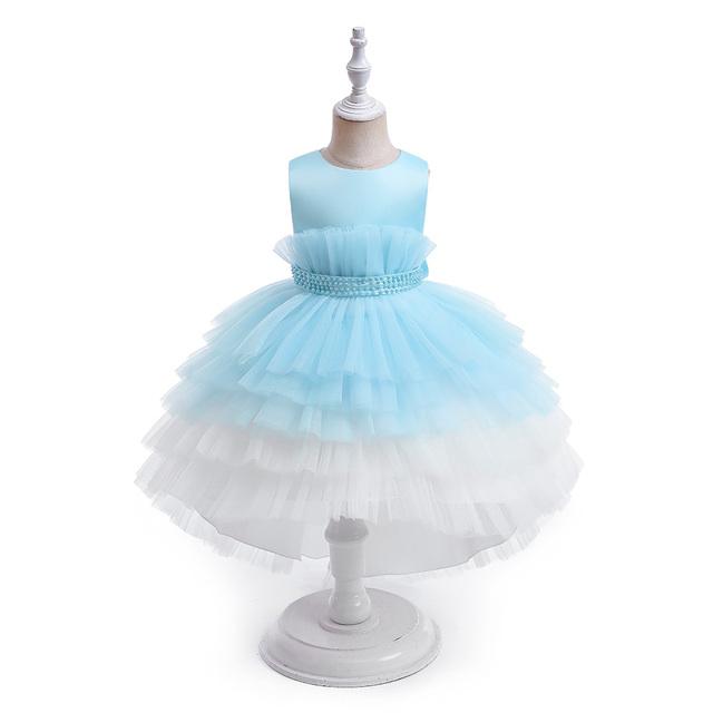Летнее фатиновое платье принцессы со шлейфом для девочек, официальное белое платье для крещения, свадьбы, детские праздничные платья для девочек, платье подружки невесты для выпускного вечера, От 3 до 10 лет