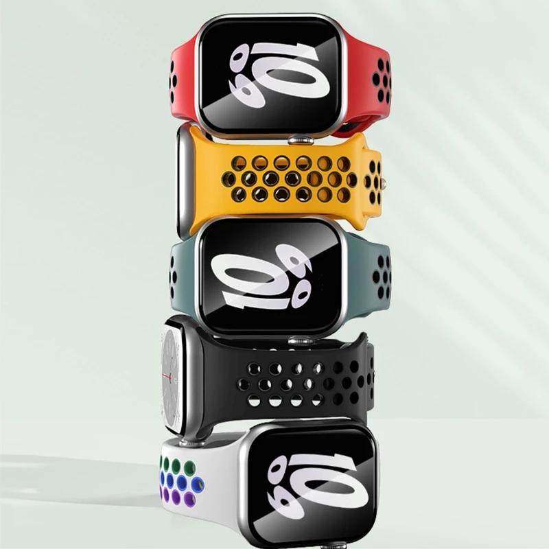 Силиконовый дышащий ремешок для Apple Watch 7, 8, 45 мм, 41 мм, 44 мм, 42 мм, 38 мм, 40 мм для iwatch, спортивный ремешок IWatch Serie SE 8, 7, 6, 5, 4, 3, 2, браслет Ultra 49 мм