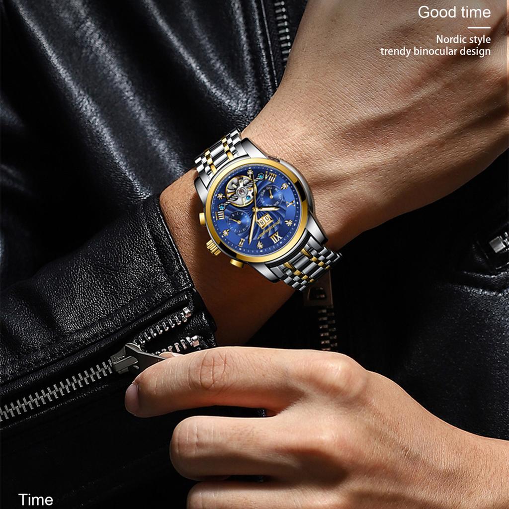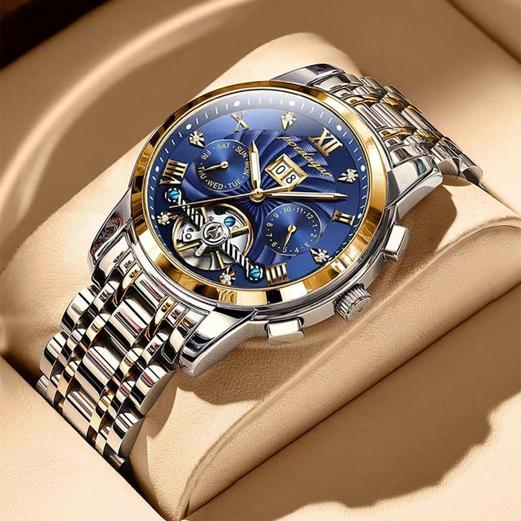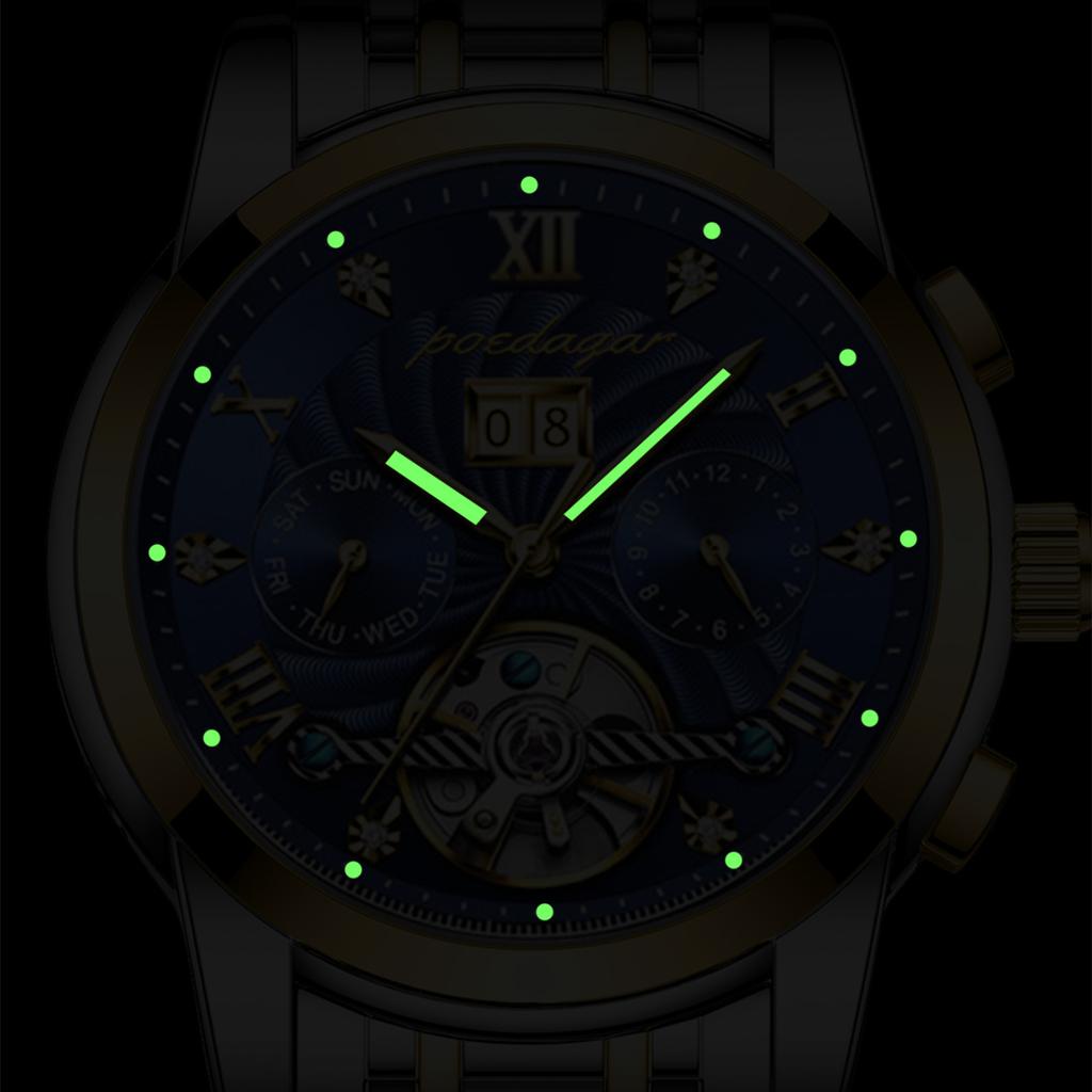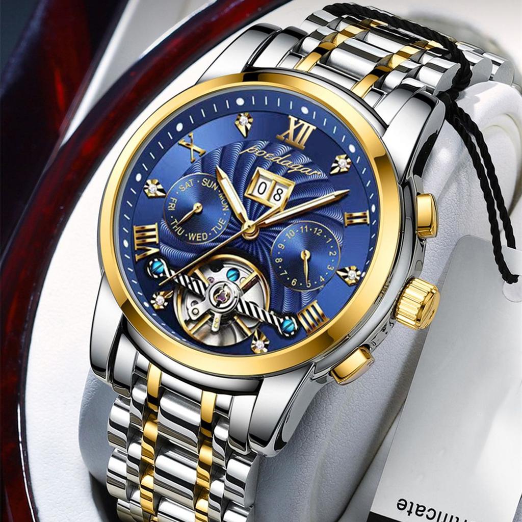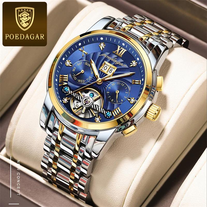 POEDAGAR Новые роскошные мужские часы высшего бренда с коробкой, автоматические многофункциональные мужские механические часы