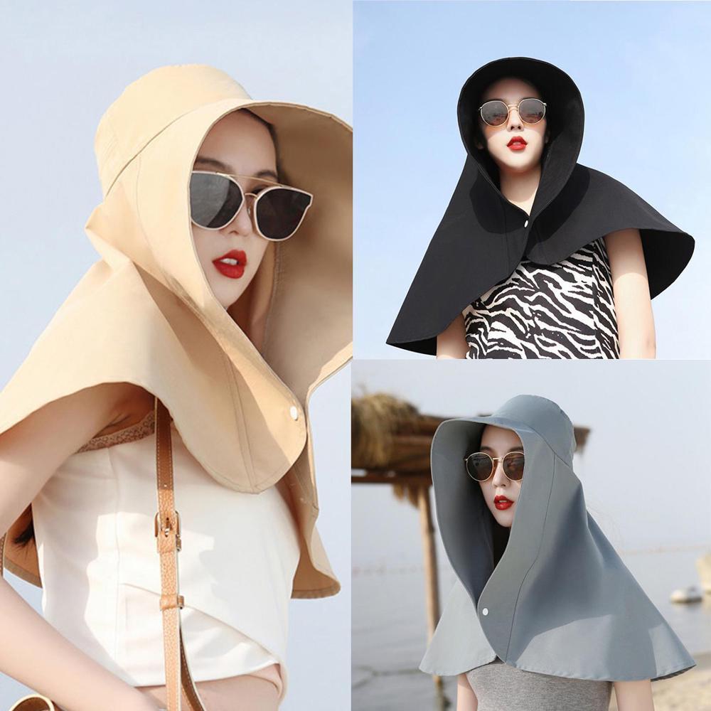 Женская шляпа от солнца с большими полями, кепка-ведро с шейным клапаном, полная защита от УФ-лучей, пляжные шляпы, женская шляпа от солнца LM