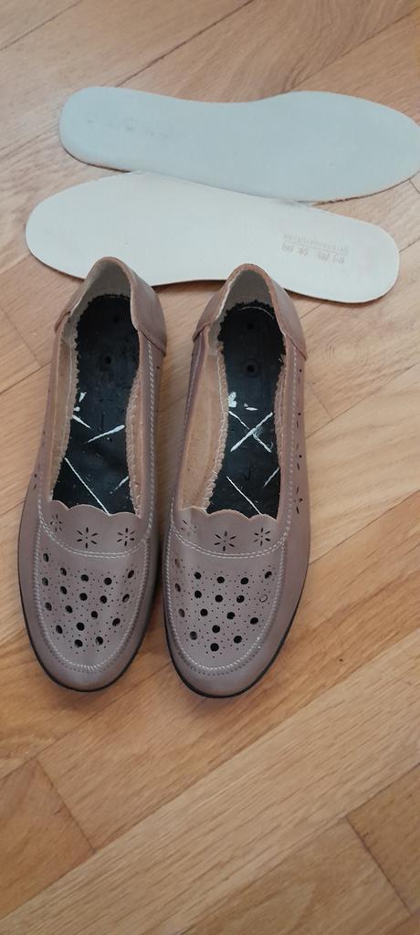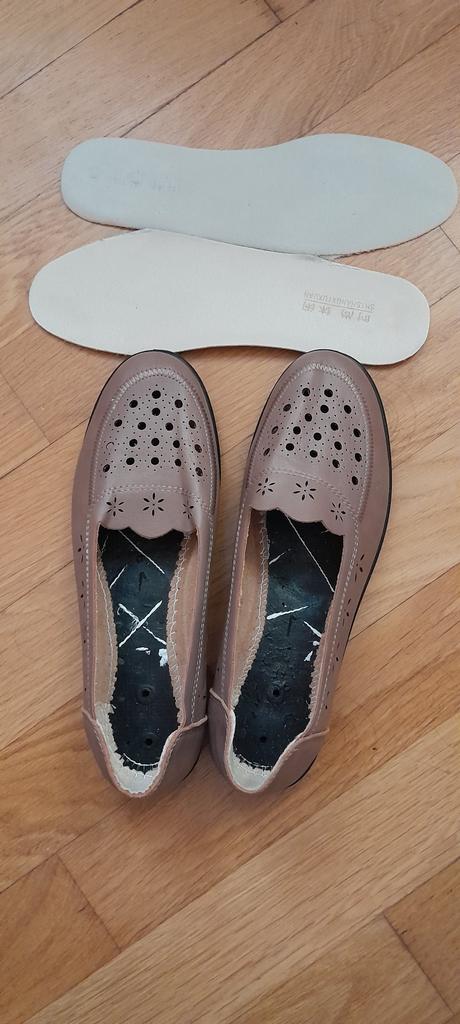 Туфли очень мягкие, удобные, на мой 39 взяла 40-й, самое то. Есть сильный запах, но он выветрится, и стельки надо будет приклеить к подошве, а то будут елозить под ногой.
