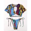 Сексуальный бикини с короткими рукавами и вырезами, женский купальник, женский купальник из двух частей, комплект бикини, купальный костюм для плавания