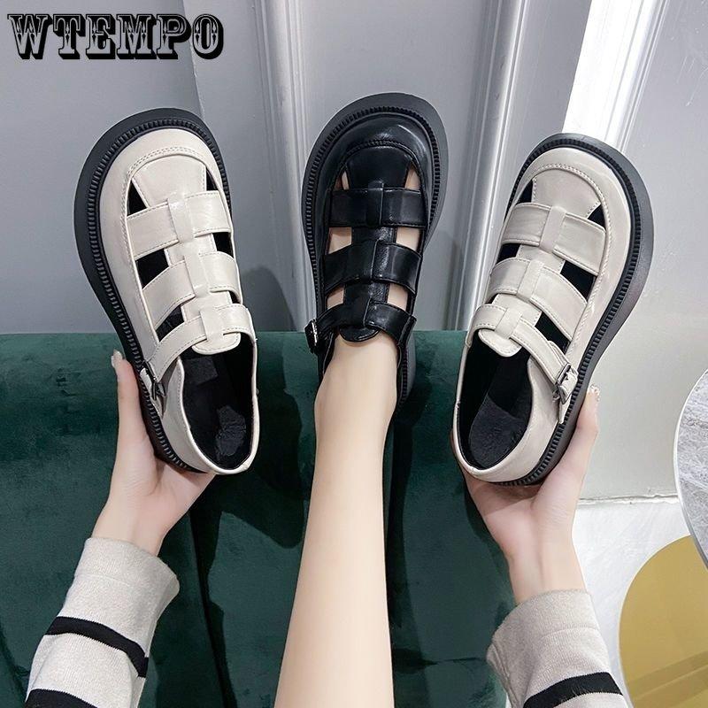 Тканые полые римские сандалии, женские туфли с ремешком в клетку, обувь с большим носком, Mori Department, британские ретро одиночные туфли, повседневная дышащая толстая подошва — купить товар онлайн с бесплатной доставкой по всему миру!