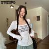 Женская футболка с длинными рукавами и буквенным принтом, короткие топы с длинными рукавами и тонкими внутренними топами