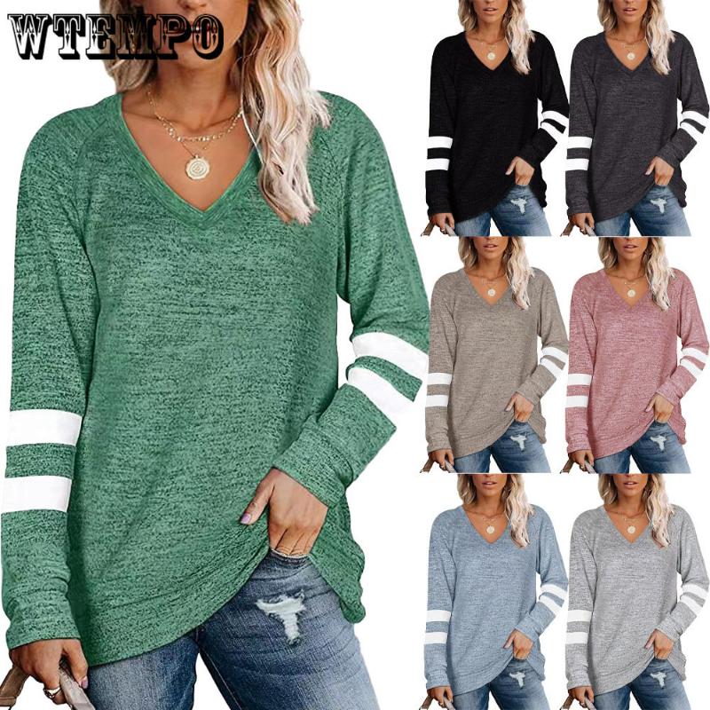Женская свободная повседневная футболка с длинными рукавами и V-образным вырезом с цветными блоками. Модные и универсальные топы. — купить товар онлайн с бесплатной доставкой по всему миру!
