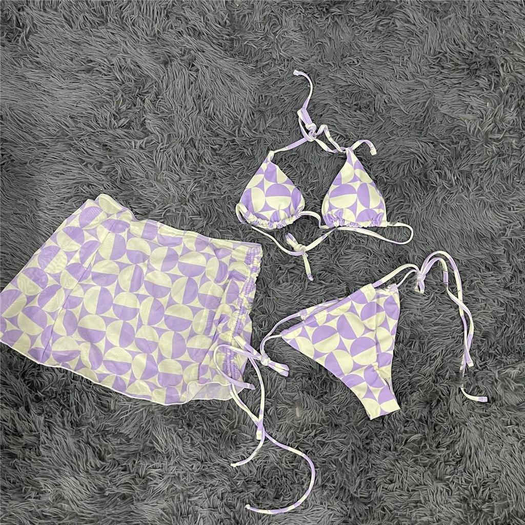 Бразильское бикини с принтом на бретельках, женские купальники, женский купальник, комплект бикини из трех частей, купальный костюм для плавания