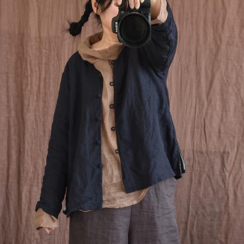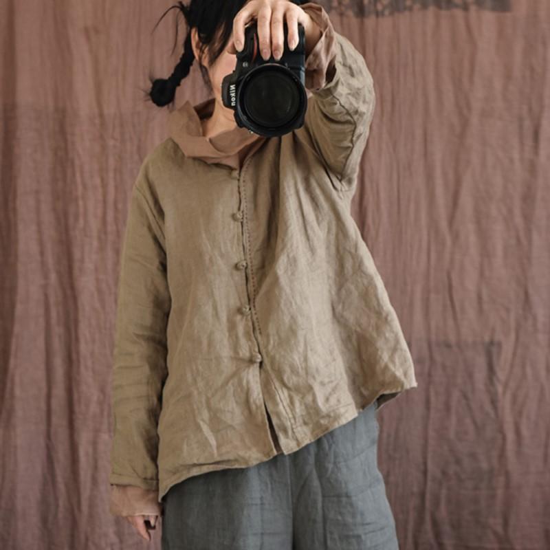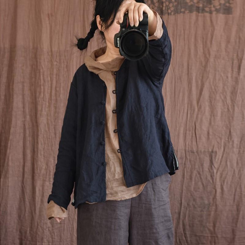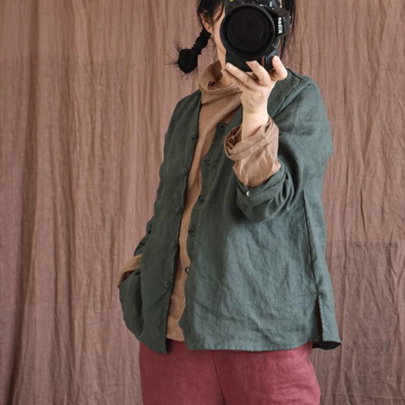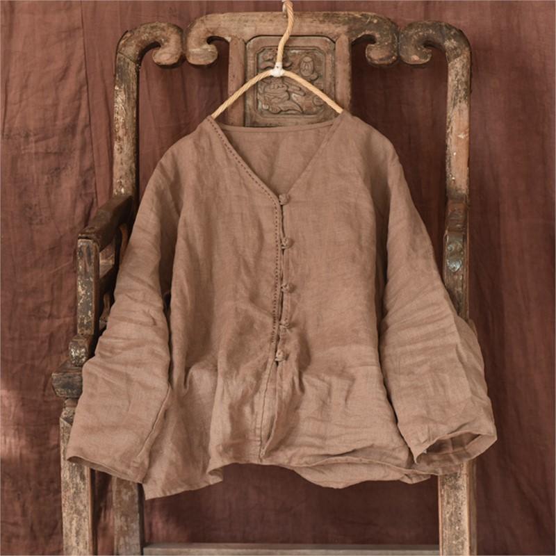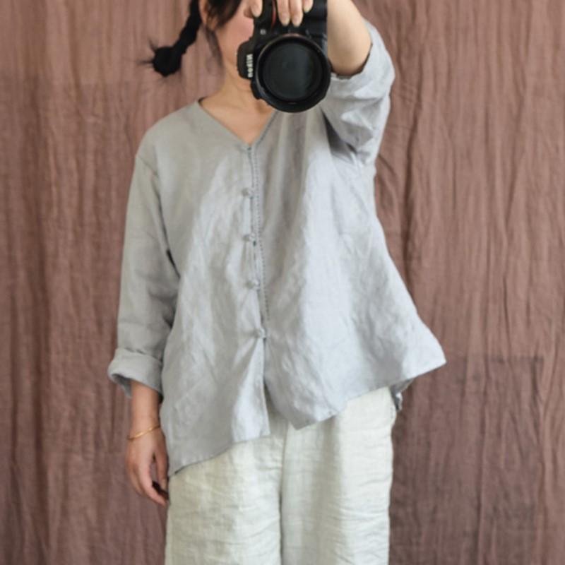 Johnature Женские винтажные льняные рубашки, топы с v-образным вырезом и длинными рукавами, весенние блузки в китайском стиле