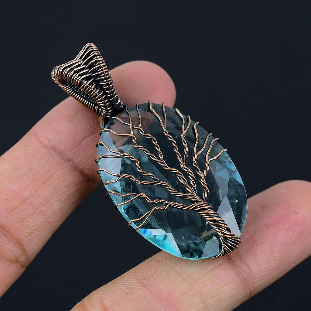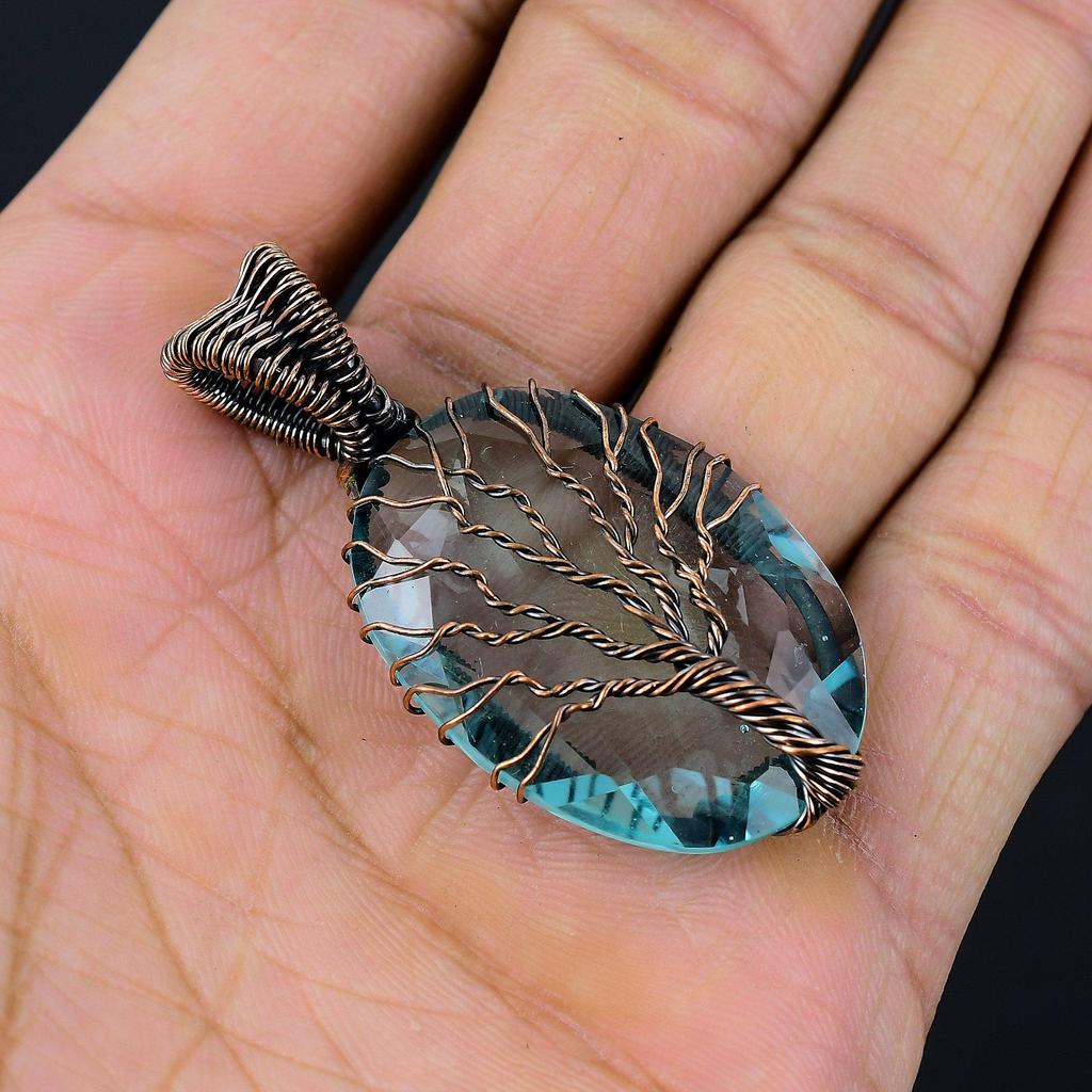 Дерево жизни швейцарский голубой топаз драгоценный камень медная проволока обруч ювелирные изделия для подарка