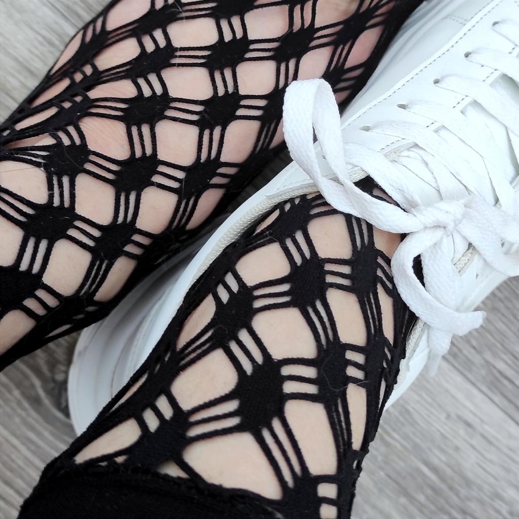 Ажурные женские носочки 🖤 Вы используете акцентные носочки, чтобы образ смотрелся интереснее? Тогда эти вам точно подойдут! У продавца несколько разных дизайнов на любой вкус. Мои выполнены из тонких нитей, переплетающихся между собой. Хочу отметить, что пространство между ними ничем не заполнено. То есть ваши ножки будут дышать в таких носочках и они идеальны на лето. Что еще могу отметить: ✅ Хорошо тянутся. ✅ Резинка надежная и не ползет вниз. ✅ Приехали в пакетике. Один носок был надет на картонную подложку, а второй нет. На моих фото видно, что один более растянут, чем второй и это отличное доказательство их универсального размера 👌 ✅ Никакого запаха нет. Я очень довольна покупкой и рекомендую носочки всеми ручками ☺️