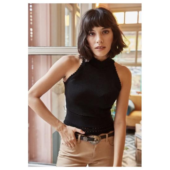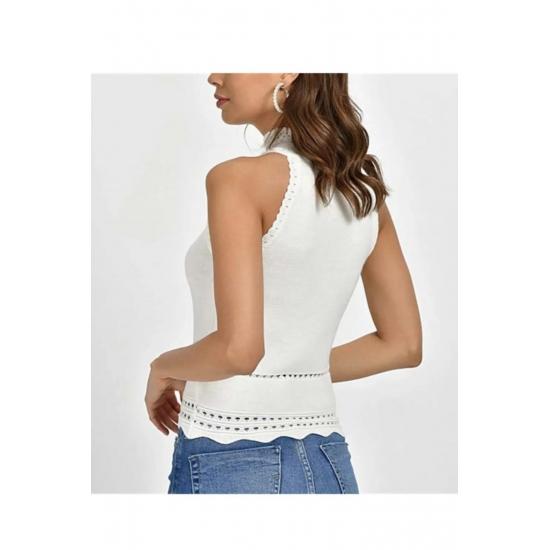 Женская кружевная блузка с вырезом на шее и нулевым рукавом