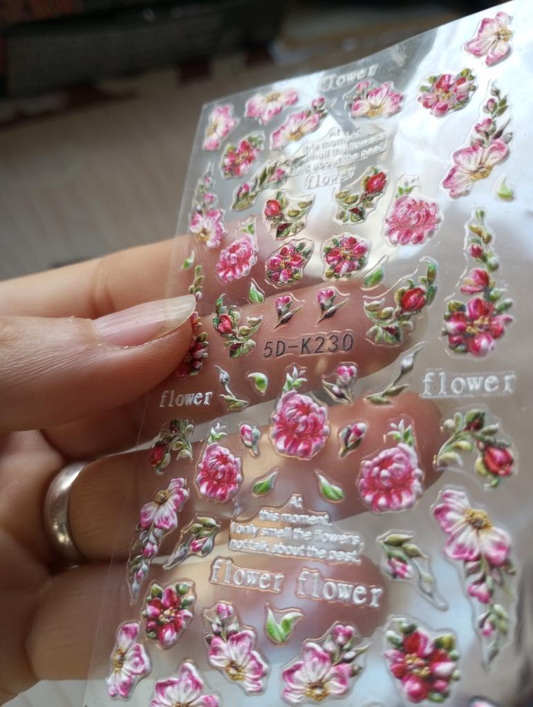 Как всегда, отличные наклейки😍😍😍. Яркие, цветочки чёткие. Приклеены на клеёнку и легко снимаются пинцетом. Выбитые. Очень понравились😍😍😍. Такого типа много наклеек заказала. Ими легко пользоваться. Спасибо большое продавцу, я рада.