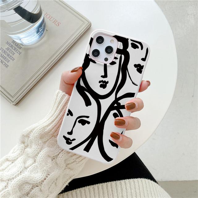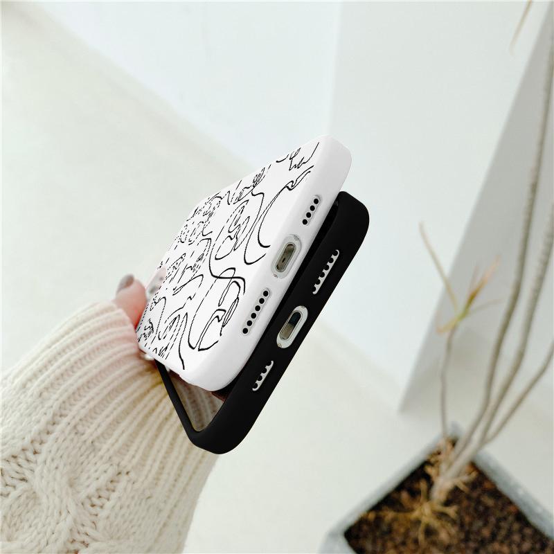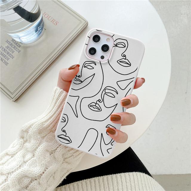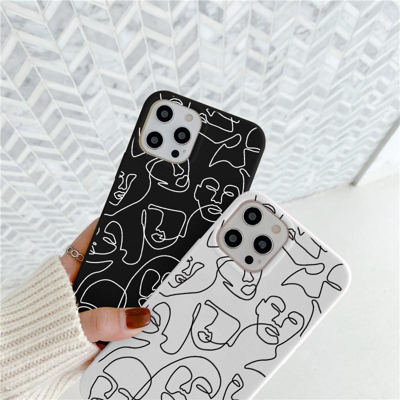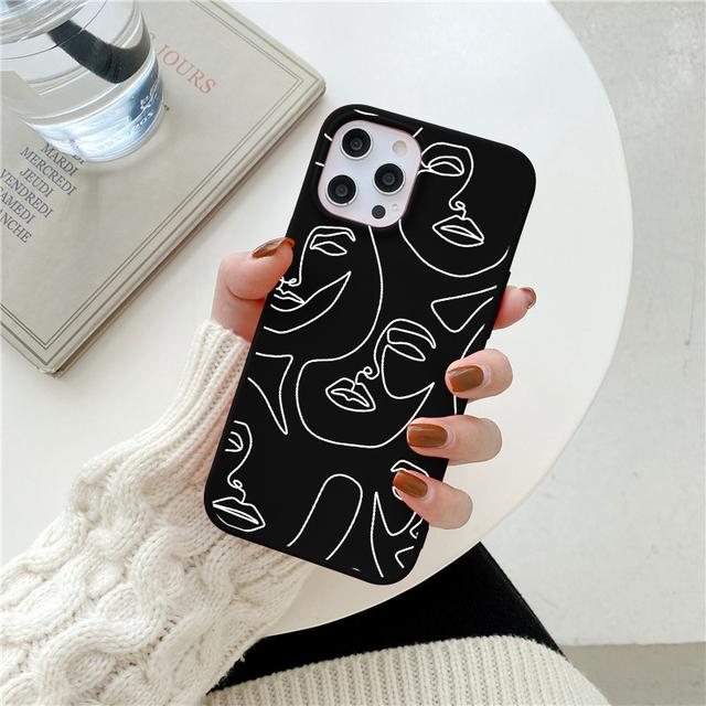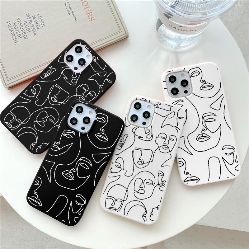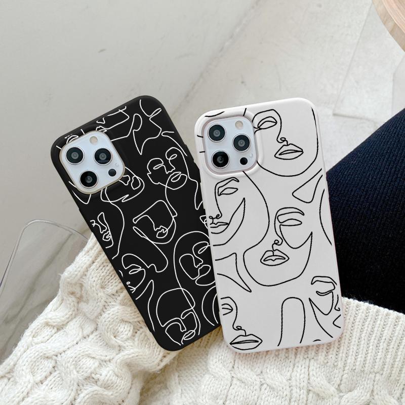 Черно-белый матовый чехол для телефона с абстрактным лицом и линиями лица для Iphone 11 12 13 Xs Pro Max Mini 7 8 6s Plus Se 3 2020 X Xr, силиконовый чехол