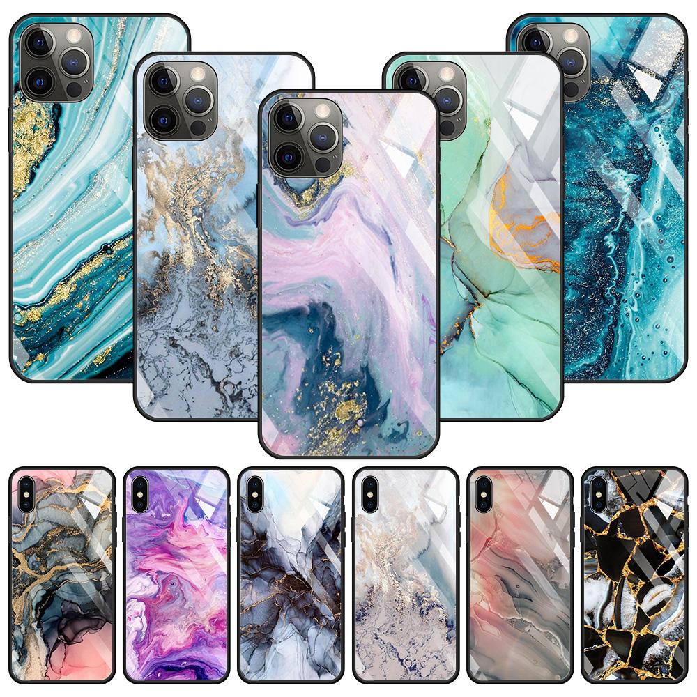 Чехол из закаленного стекла для Iphone 12 11 Pro Max 14 13 12 Mini Fundas X Xr Xs Max 8 7 6s Plus, чехол Fundas Colorfull Marble
