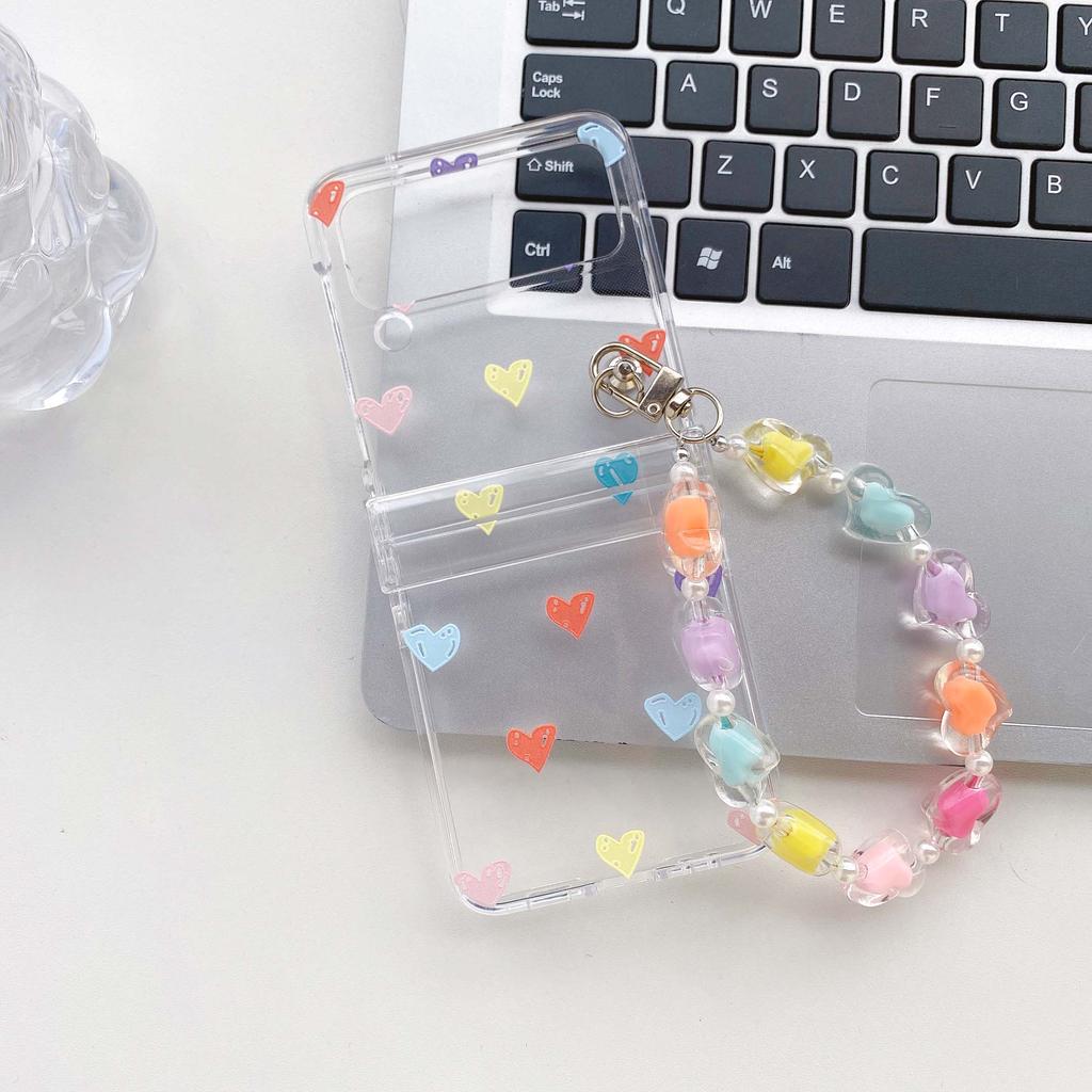 Красочный чехол Love Ins для Samsung Galaxy Z Flip3 Flip4 Flip 3 4 5g, защитный чехол с мультяшным сердечком для ПК, милый браслет