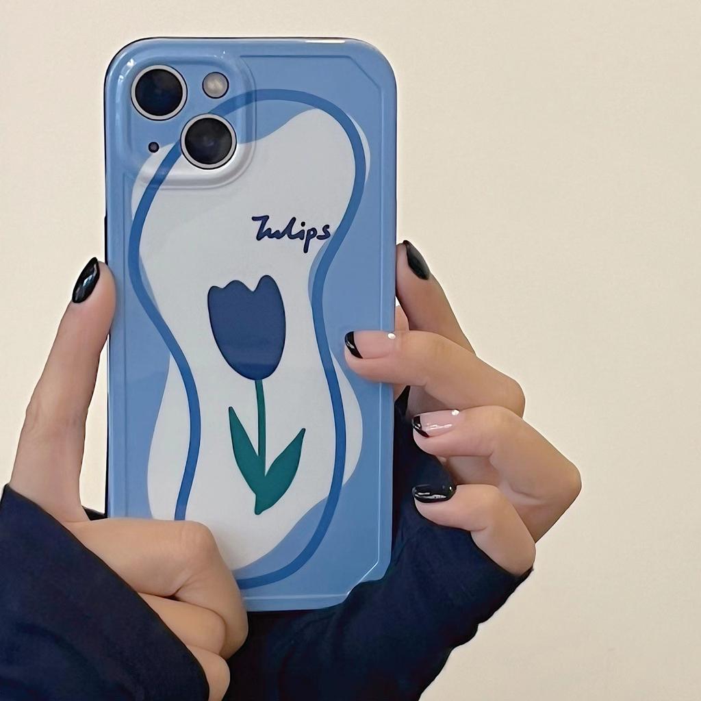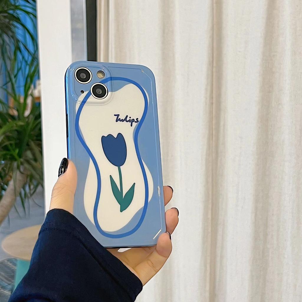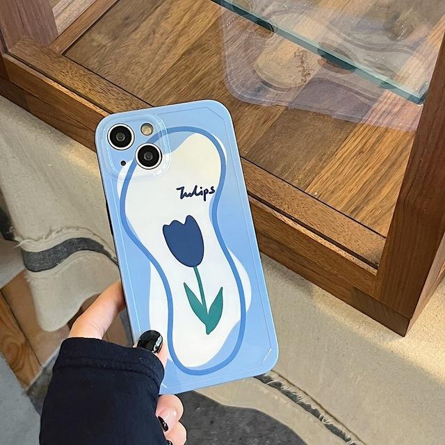Imd Синий Тюльпаны Силиконовый Мягкий Цветок Симпатичный Чехол Для Телефона Ins Для Iphone 11 13 Pro Max X Xsmax 12 Promax Xr Противоударный Задняя Крышка