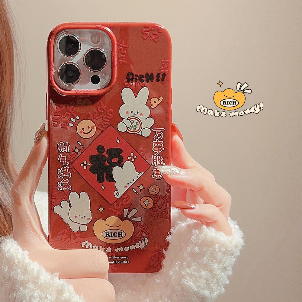 С Новым 2023 годом кролик мультфильм смайлик богатый милый чехол для телефона для Iphone Xr Xsmax X 11 12 Promax Xsmax Xr X 14 Pro Max 13 чехол