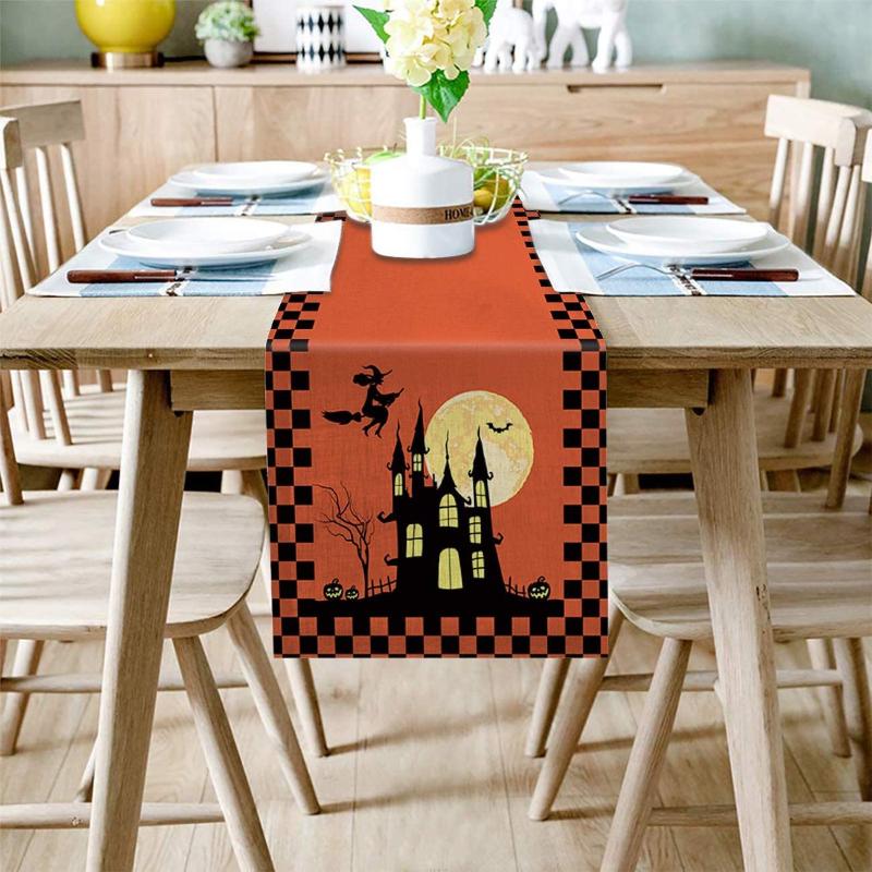 Хэллоуин Льняная скатерть Тыква Оранжевая скатерть Скатерть Столовая вечеринка Праздничное украшение Осенний фестиваль