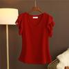 Летняя женская свободная универсальная шифоновая блузка с короткими рукавами и v-образным вырезом больших размеров, женская футболка