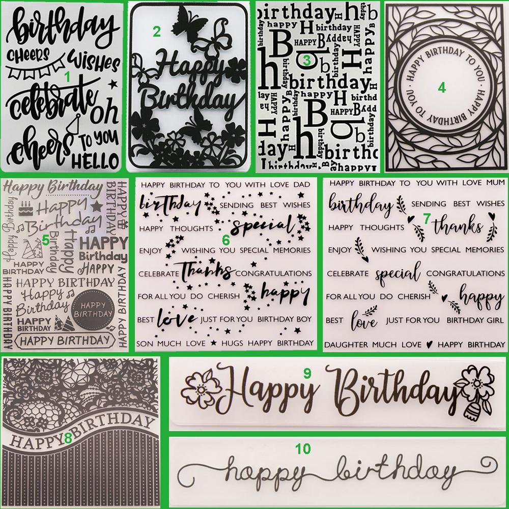 Большой размерный ряд: No.4-Birthday Garland, No.5-Birthday Frame, No.7-Birthday Girl, No.8-Birthday Flower, No.9-Happy Birthday Flower, No.11-Birthday Gift, No.3-Happy Birthday, No.6-Birthday Boy, No.10-Happy Birthday Lace, No.12-Birthday Cake, No.1-Birthday Cheers, No.2-Butterfly Butterfly