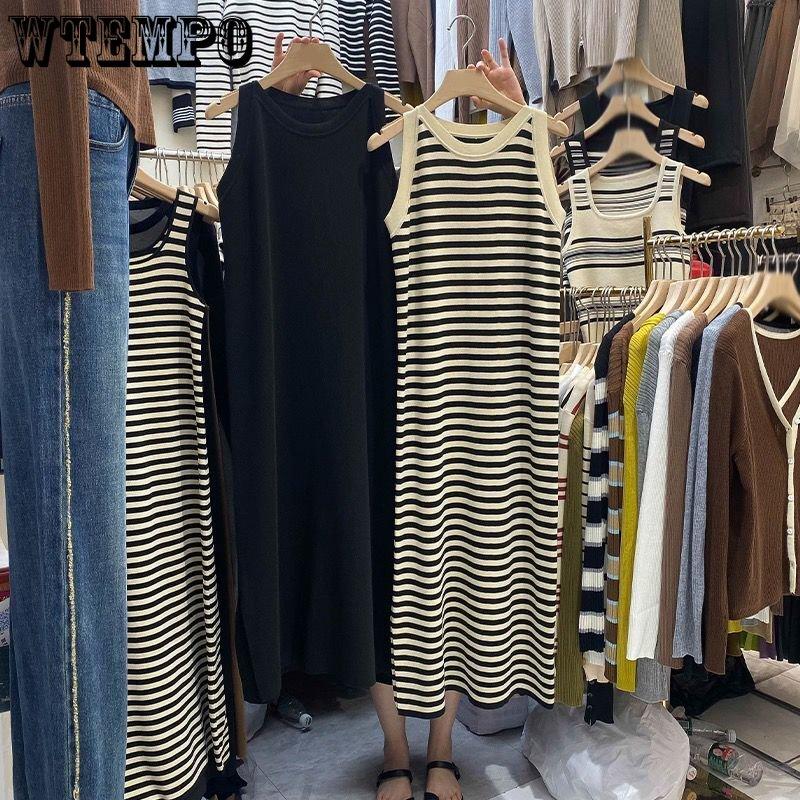 Женское платье, полосатое платье-майка с бретелькой на бретельках, без рукавов, свободное, большого размера, верхняя одежда, открытое длинное платье с внутренней стороны низа