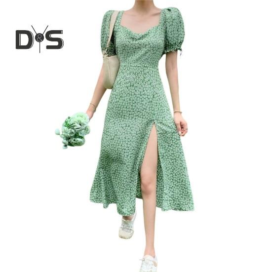 Женское летнее платье в сборе с высоким разрезом, сладкое платье миди для летних каникул