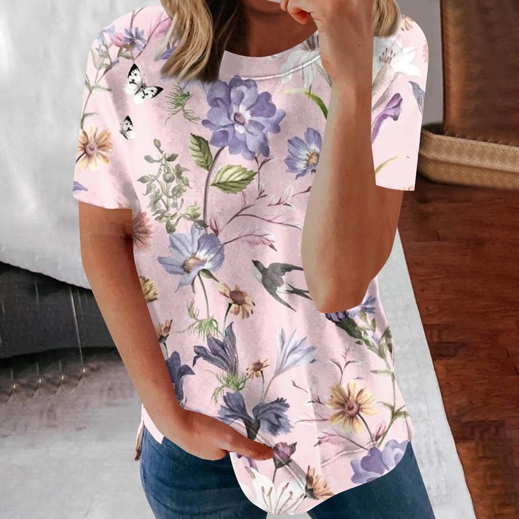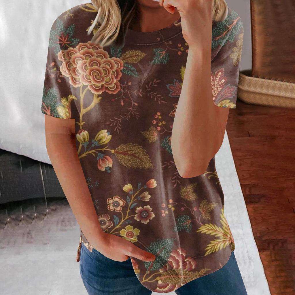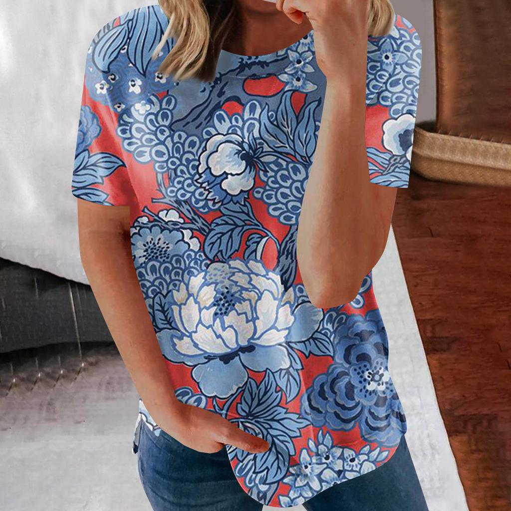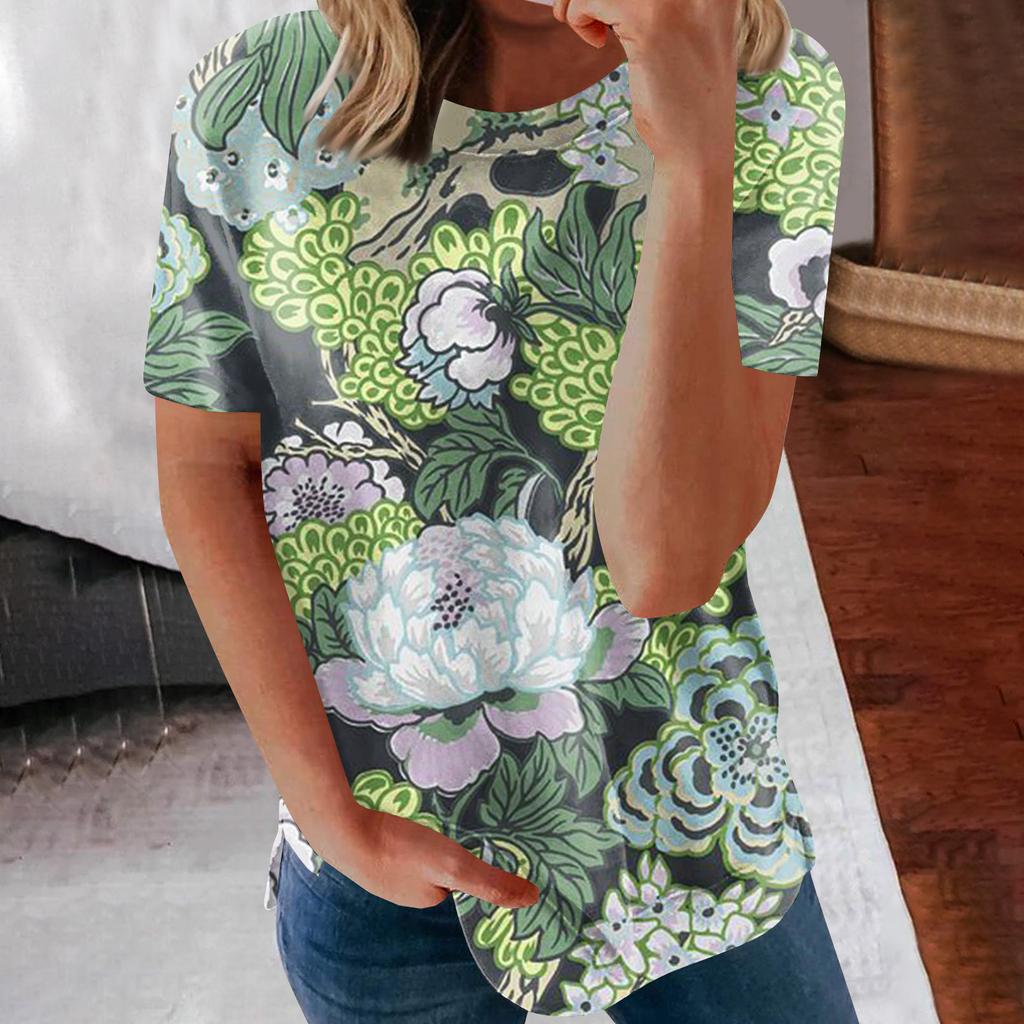 Женские летние свободные топы с короткими рукавами и круглым вырезом в стиле ретро с короткими рукавами и принтом, женские летние футболки