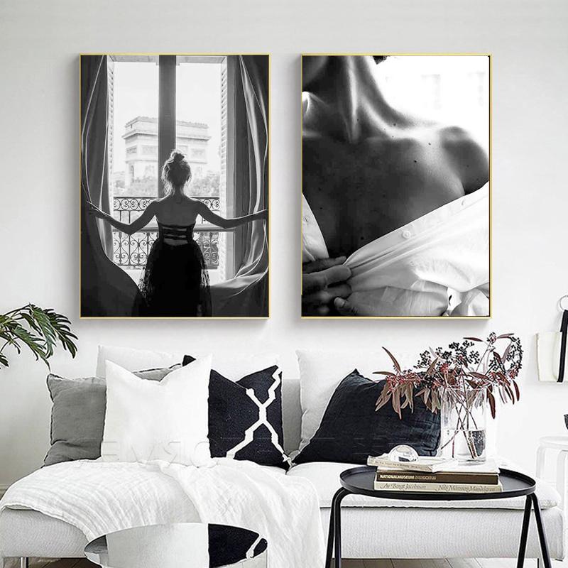 Скандинавская картина на холсте, модные красивые женские постеры, черно-белые сексуальные оконные девушки, настенные художественные фотографии, домашний декор для гостиной