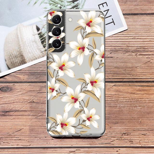 Прозрачный чехол с белым цветком и цветочным принтом для Samsung Galaxy S23 S22 S21 S20 Fe Ultra S10 S9 S8 Plus 10e S10lite Note 10plus 20ultra