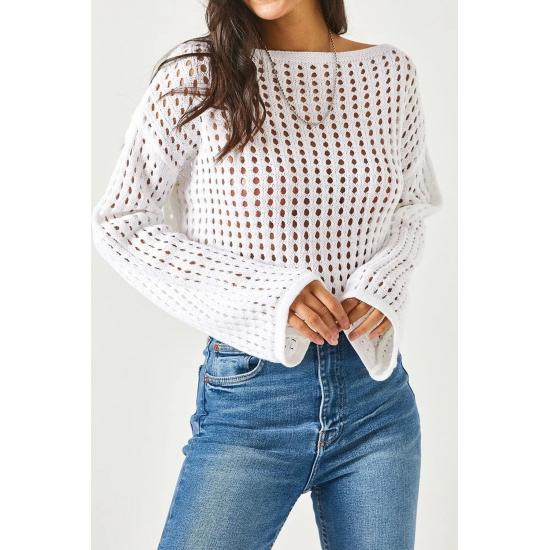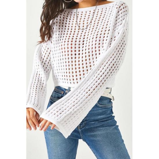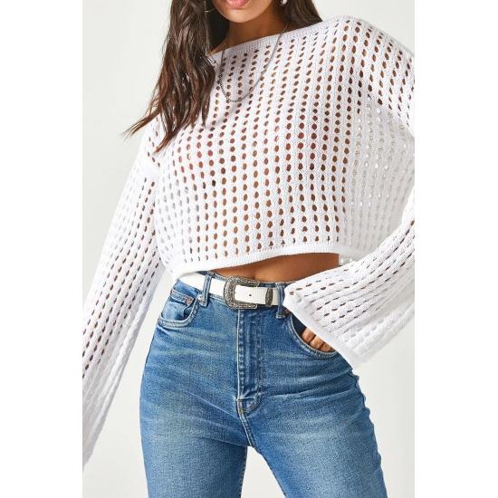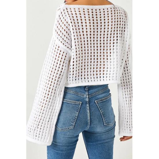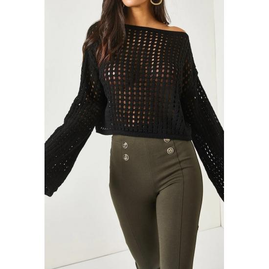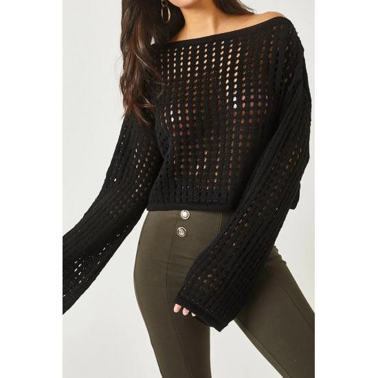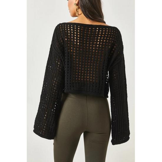 Женская ажурная укороченная трикотажная блуза с испанским рукавом и широким воротником со свободными отверстиями