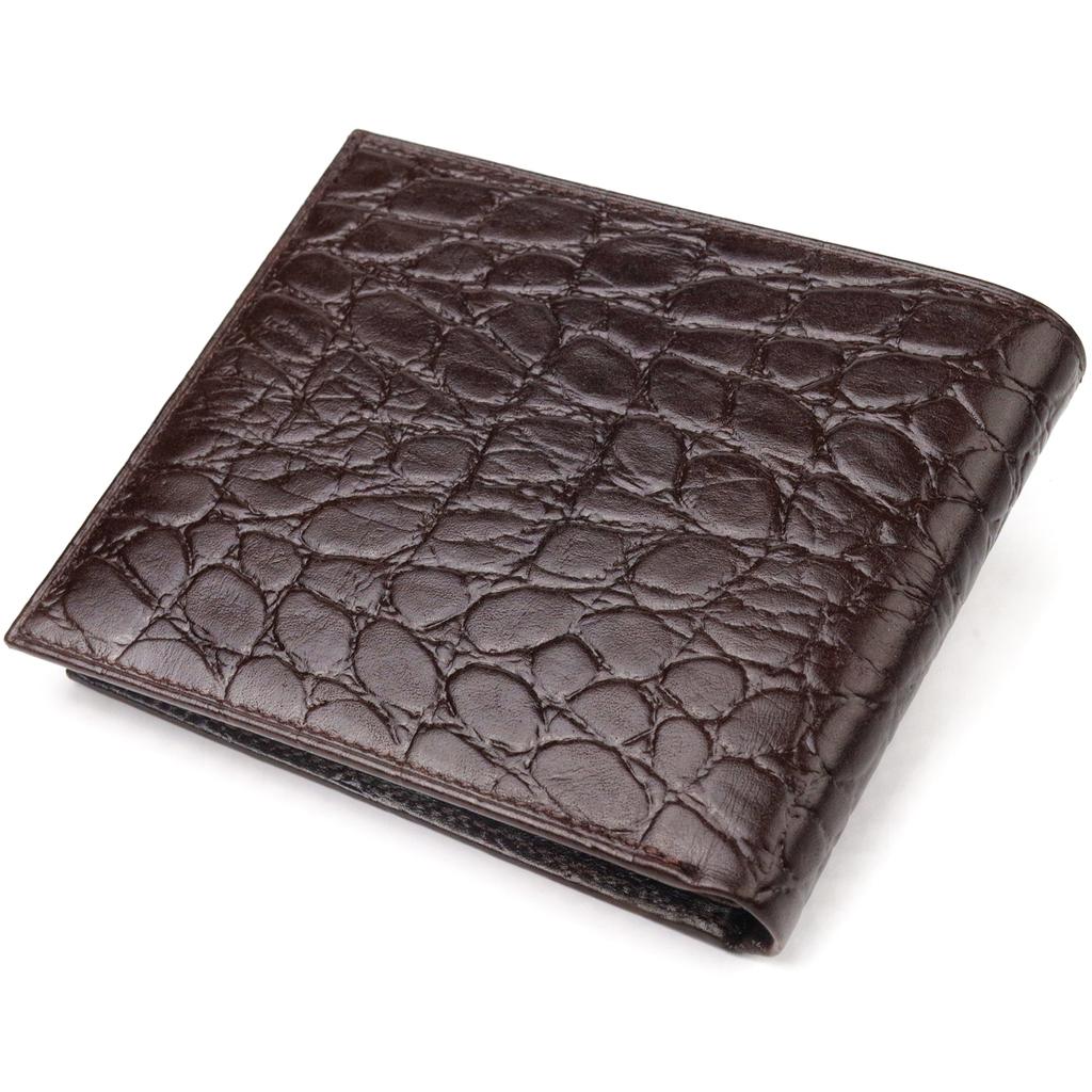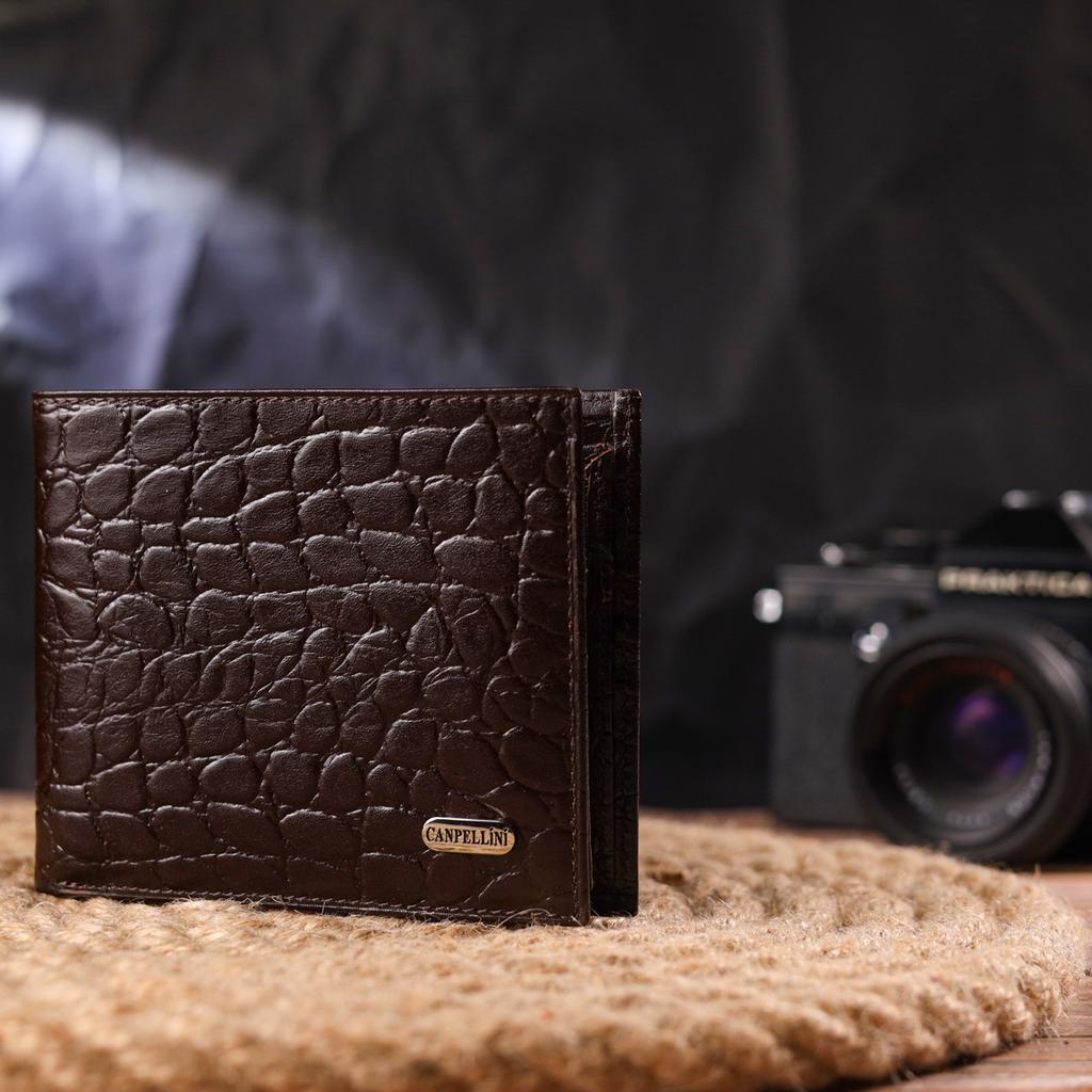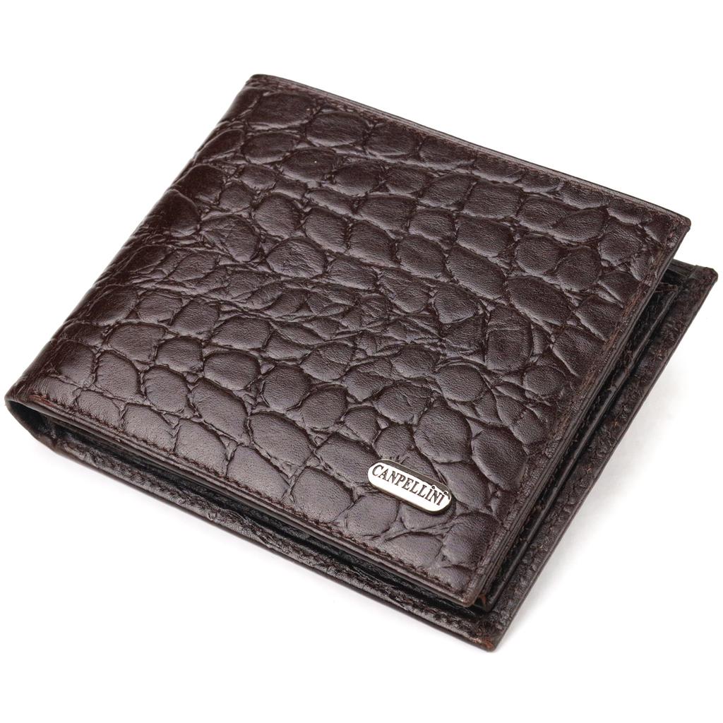 Интересный мужской кошелек в два сложения из натуральной фактурной кожи с тиснением под крокодила CANPELLINI Purse 21583 Коричневый