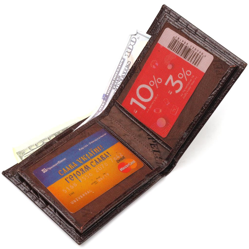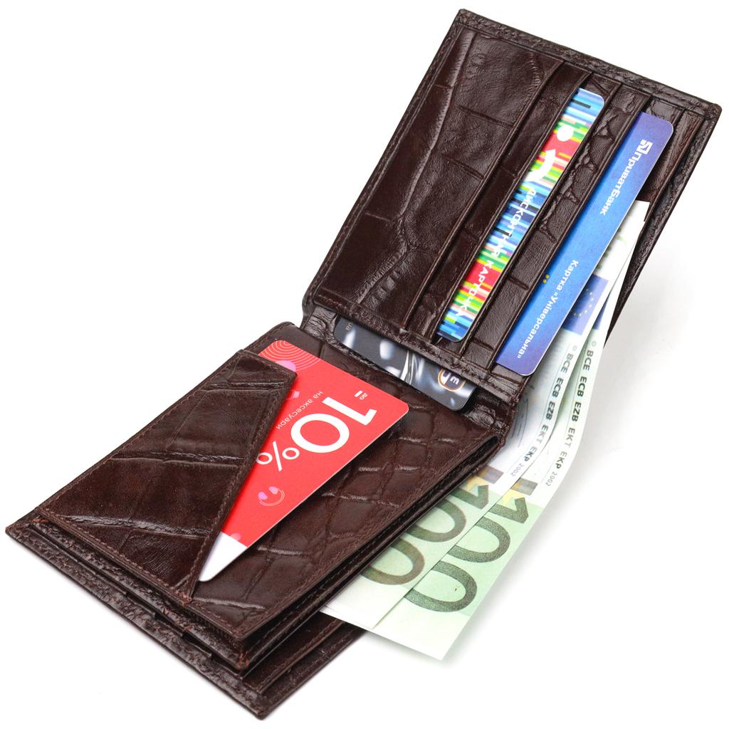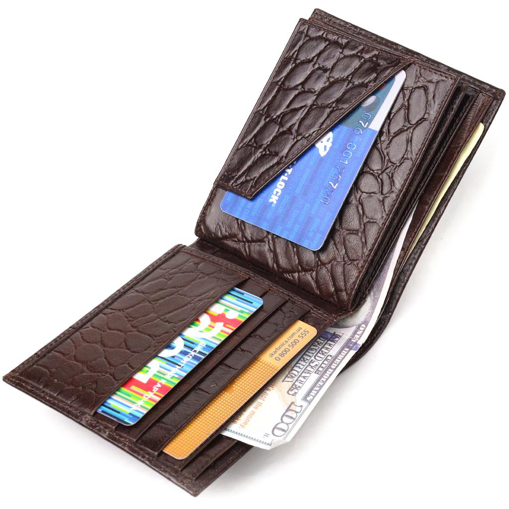 Интересный мужской кошелек в два сложения из натуральной фактурной кожи с тиснением под крокодила CANPELLINI Purse 21583 Коричневый