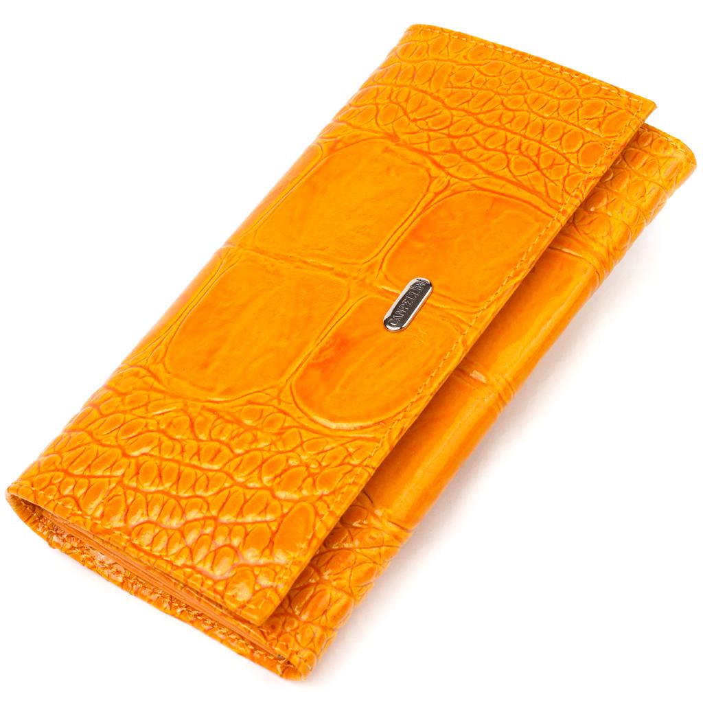 Яркий Женский кошелек из натуральной фактурной кожи CANPELLINI Wallet 21651 Желтый