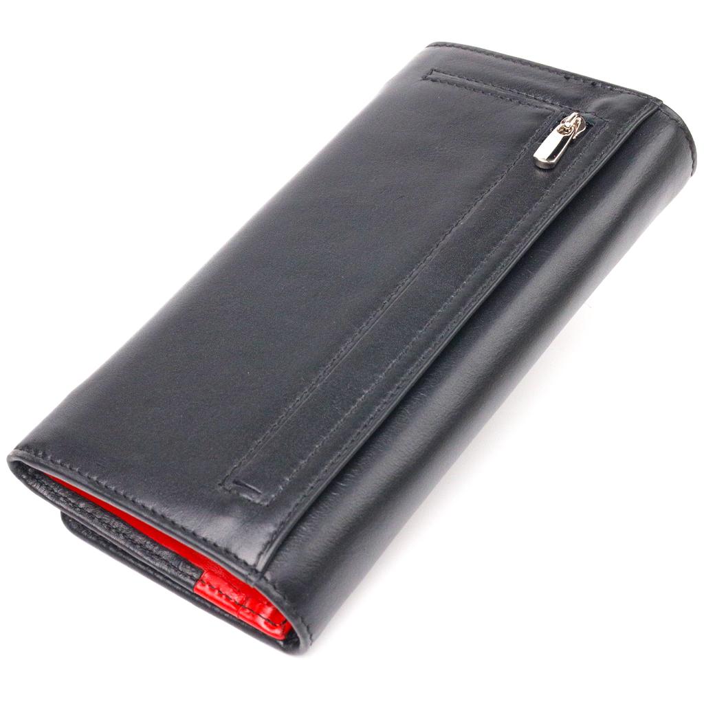 Вместительный женский кошелек из натуральной гладкой кожи CANPELLINI Wallet 21611 Черный
