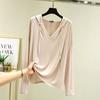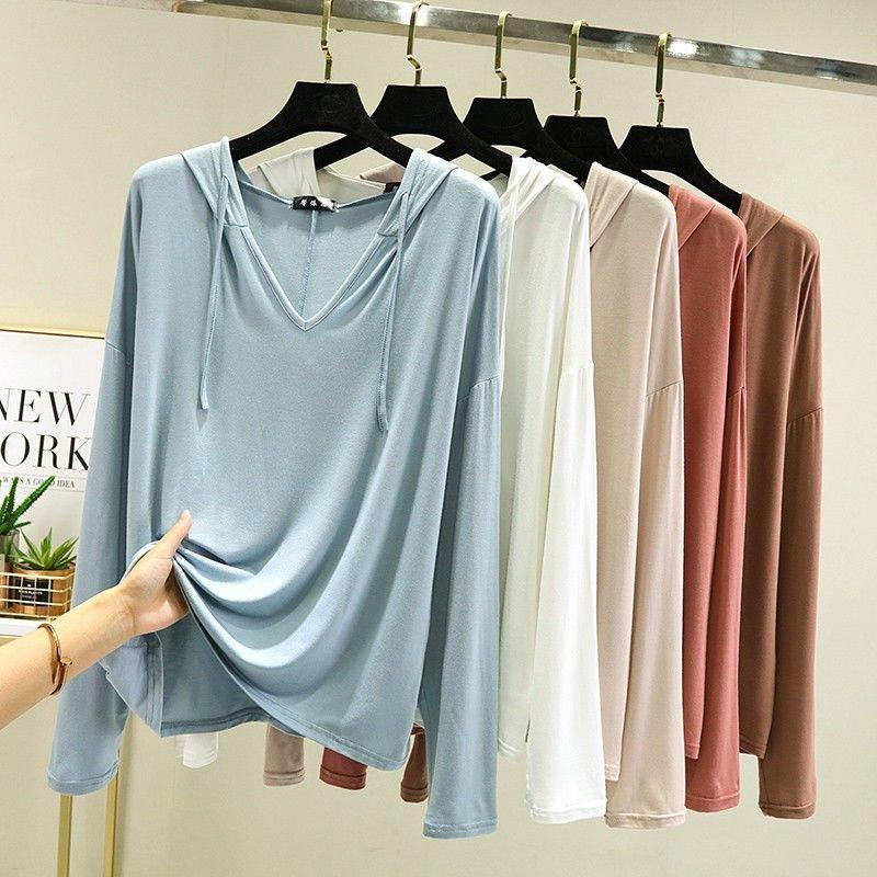 Снаружи модальная футболка с длинными рукавами в корейском стиле, весенне-летняя свободная рубашка большого размера с капюшоном