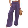 Женские летние широкие брюки из мягкой дышащей смеси хлопка, средней эластичной резинки на талии, карманы полной длины, повседневные, универсальные, идеально подходят для офиса, гостиной, йоги