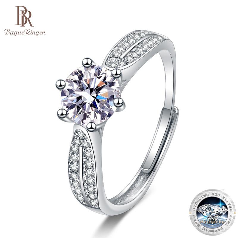 Bague Ringen Кольцо с муассанитом VVS D цвета 1 карат/2 карата для женщин, ювелирные изделия из стерлингового серебра 925 пробы, открытые кольца с выращенными в лаборатории бриллиантами, подарок