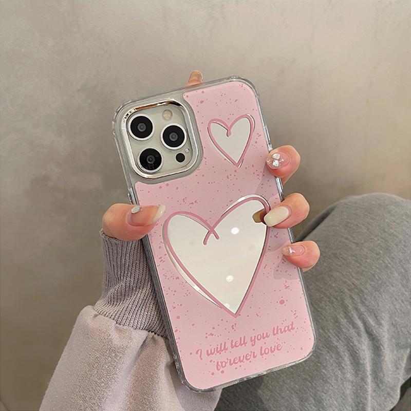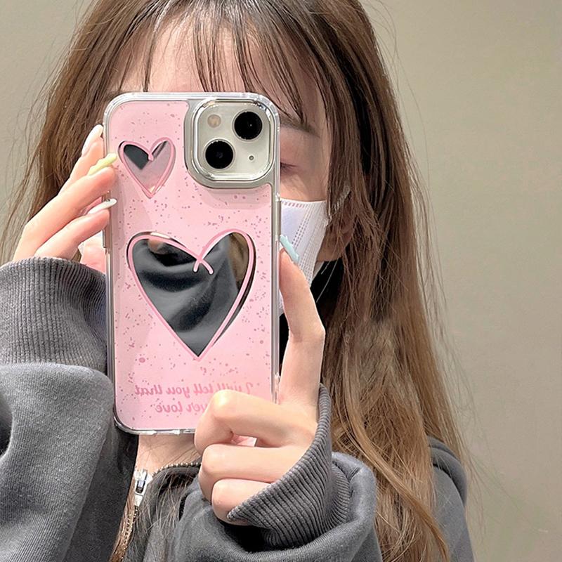 Зеркальный чехол для макияжа с розовым сердечком для Iphone 13 14 12 11 Pro Max, милая мягкая задняя крышка для девочек, принципиально