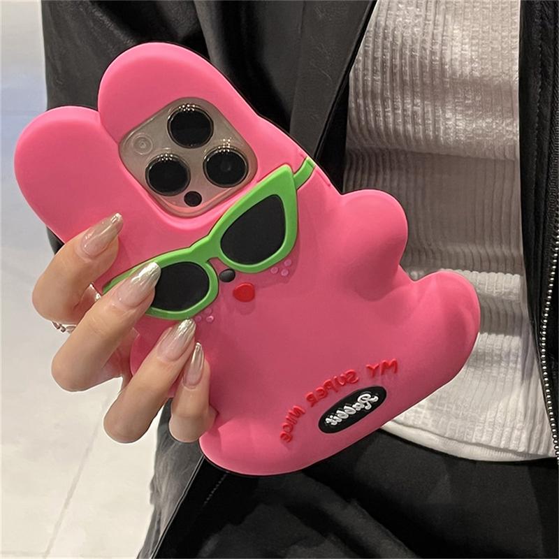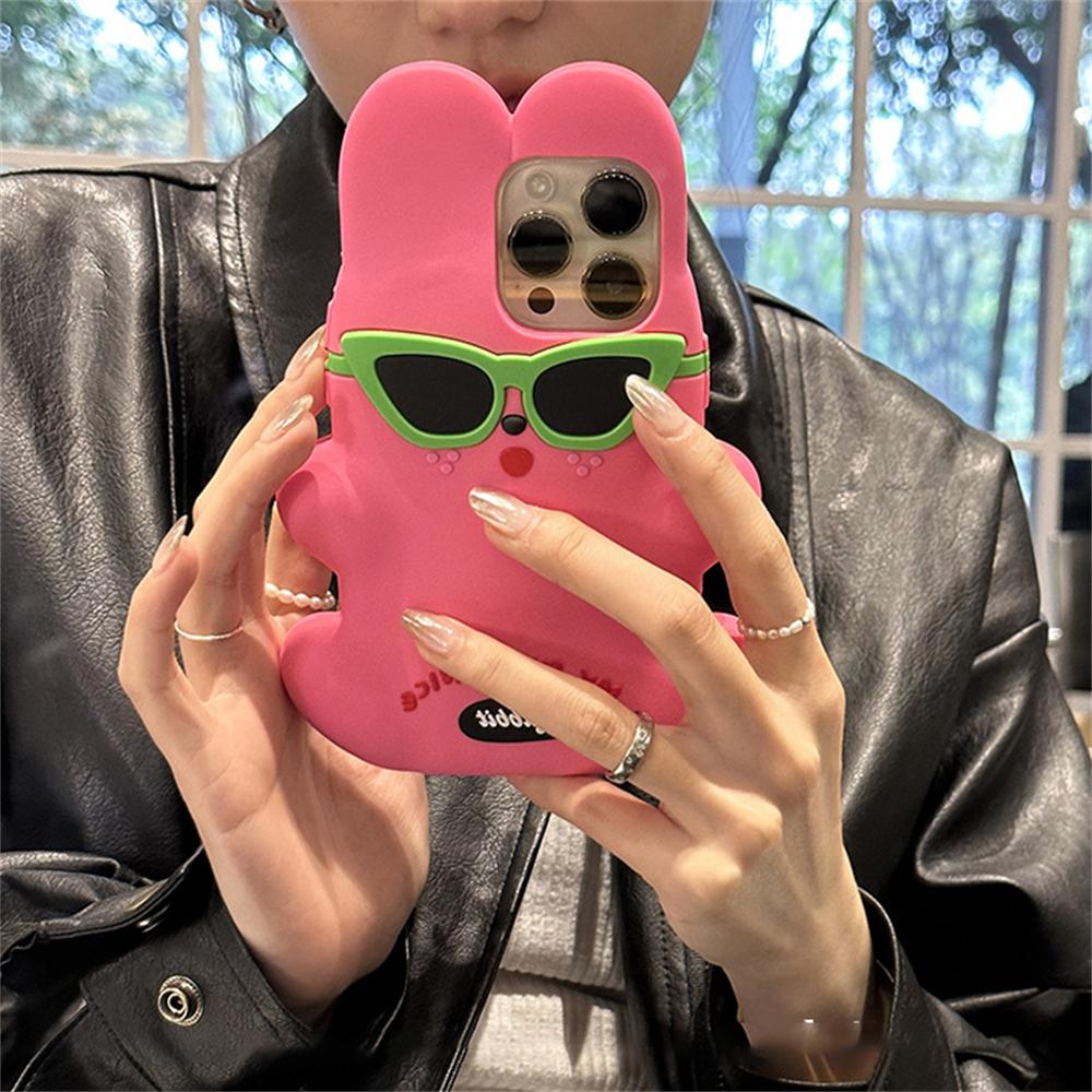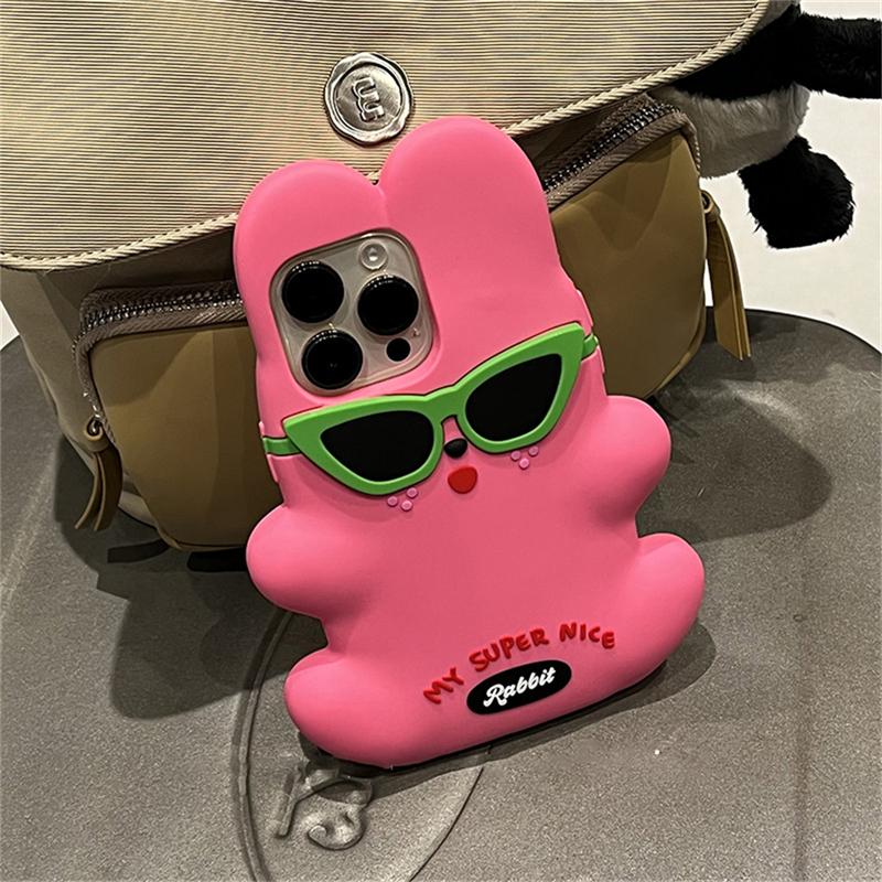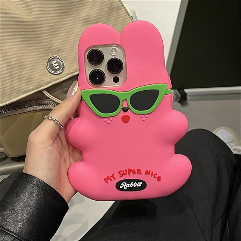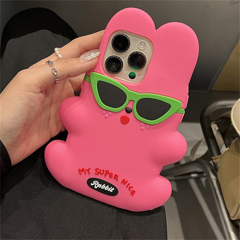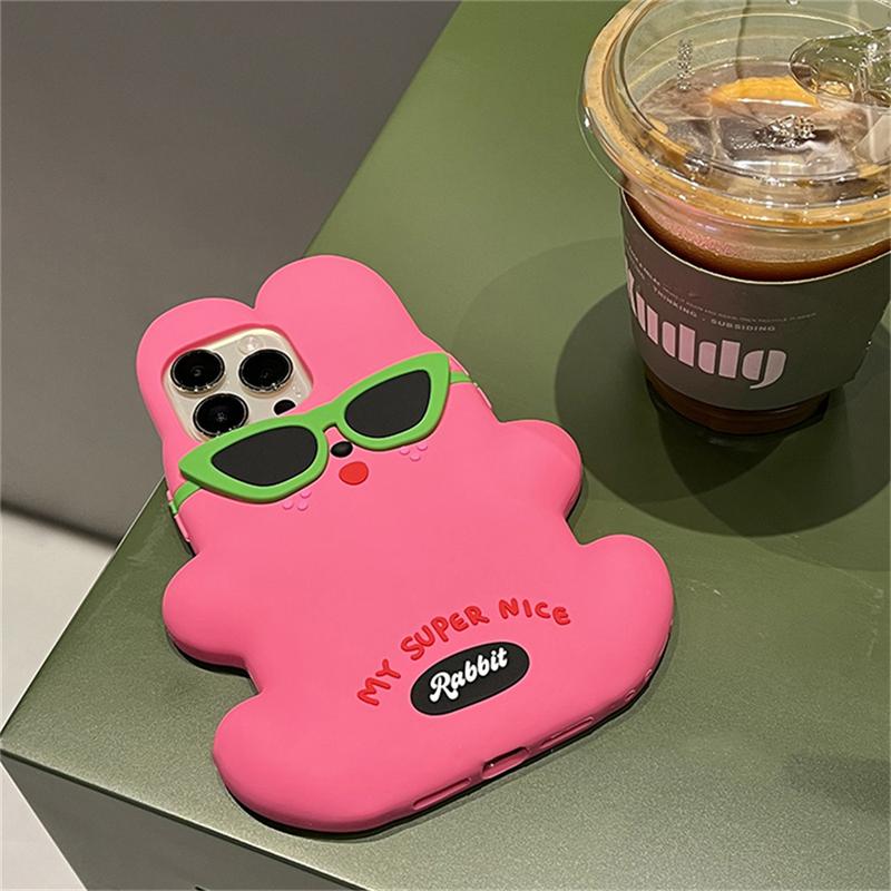 Ins корейские милые забавные солнцезащитные очки с кроликом силиконовый чехол для Iphone 14 13 12 Pro Max 11 прекрасный розовый кролик противоударный мягкий чехол