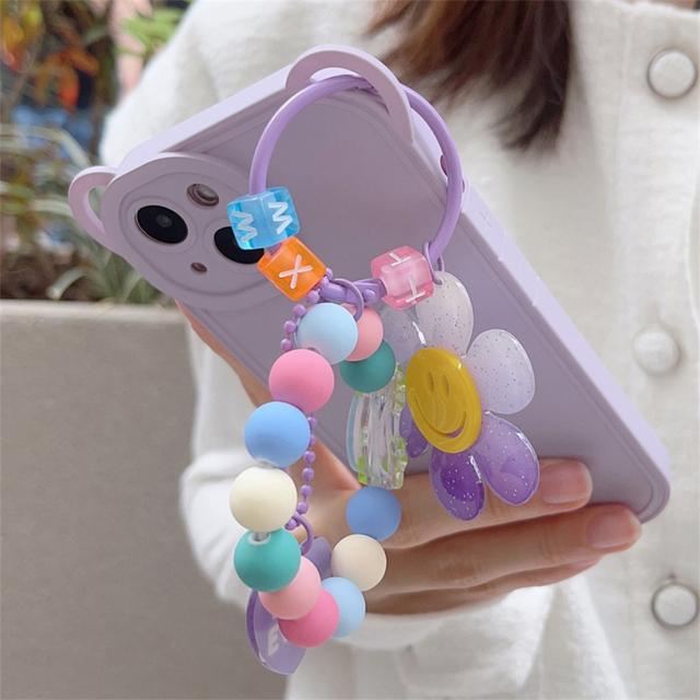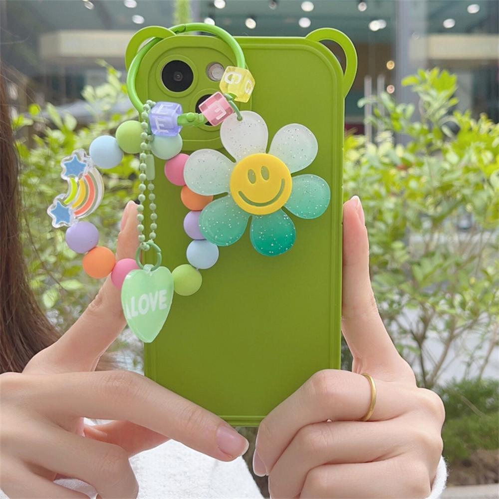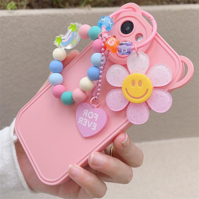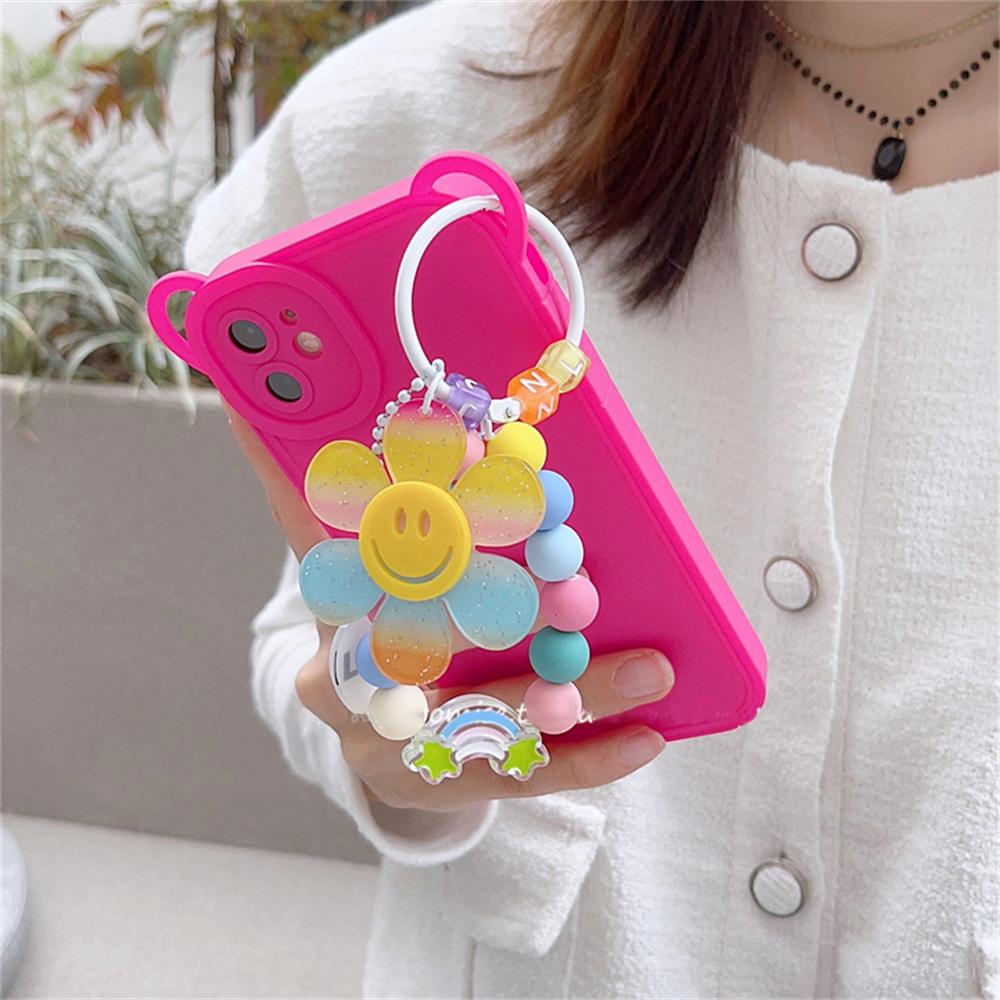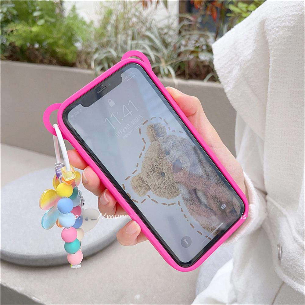 Корейский милый 3d медвежьи уши брелок с подсолнечником, мягкий чехол для Iphone 14 13 12 11 Pro Xs Max X Xr 7 8 Plus противоударный чехол с рисунком